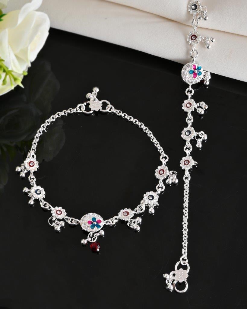 Enhance Your Jewelry Collection With Our Set Of 2 Stone Studded Circular Shaped Traditional Anklets. Each Anklet Features An Elegant Circular Design, Intricately Adorned With Sparkling Stones That Capture The Essence Of Traditional Craftsmanship. Crafted For Durability And Comfort, These Anklets Are Perfect For Both Everyday Wear And Special Occasions. Lightweight And Stylish, They Effortlessly Elevate Any Outfit, Making Them An Essential Accessory For The Modern Woman Who Appreciates The Beauty Of Classic Designs. Add A Touch Of Timeless Elegance To Your Look With These Stunning Anklets!