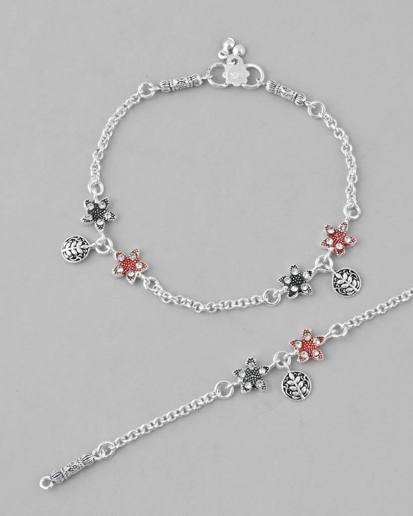 Embrace The Charm Of Nature With Our Set Of 2 Traditional Flower Shaped Designer Anklets. Each Anklet Features A Beautifully Crafted Flower Design, Showcasing Exquisite Detailing That Reflects Traditional Artistry. Made From High-Quality Materials, These Anklets Are Both Durable And Lightweight, Ensuring Comfort For All-Day Wear. Perfect For Adding A Touch Of Elegance To Casual Outfits Or Festive Attire, They Effortlessly Enhance Any Look. A Delightful Accessory For The Modern Woman Who Loves To Celebrate Her Unique Style With Timeless Floral Elegance!