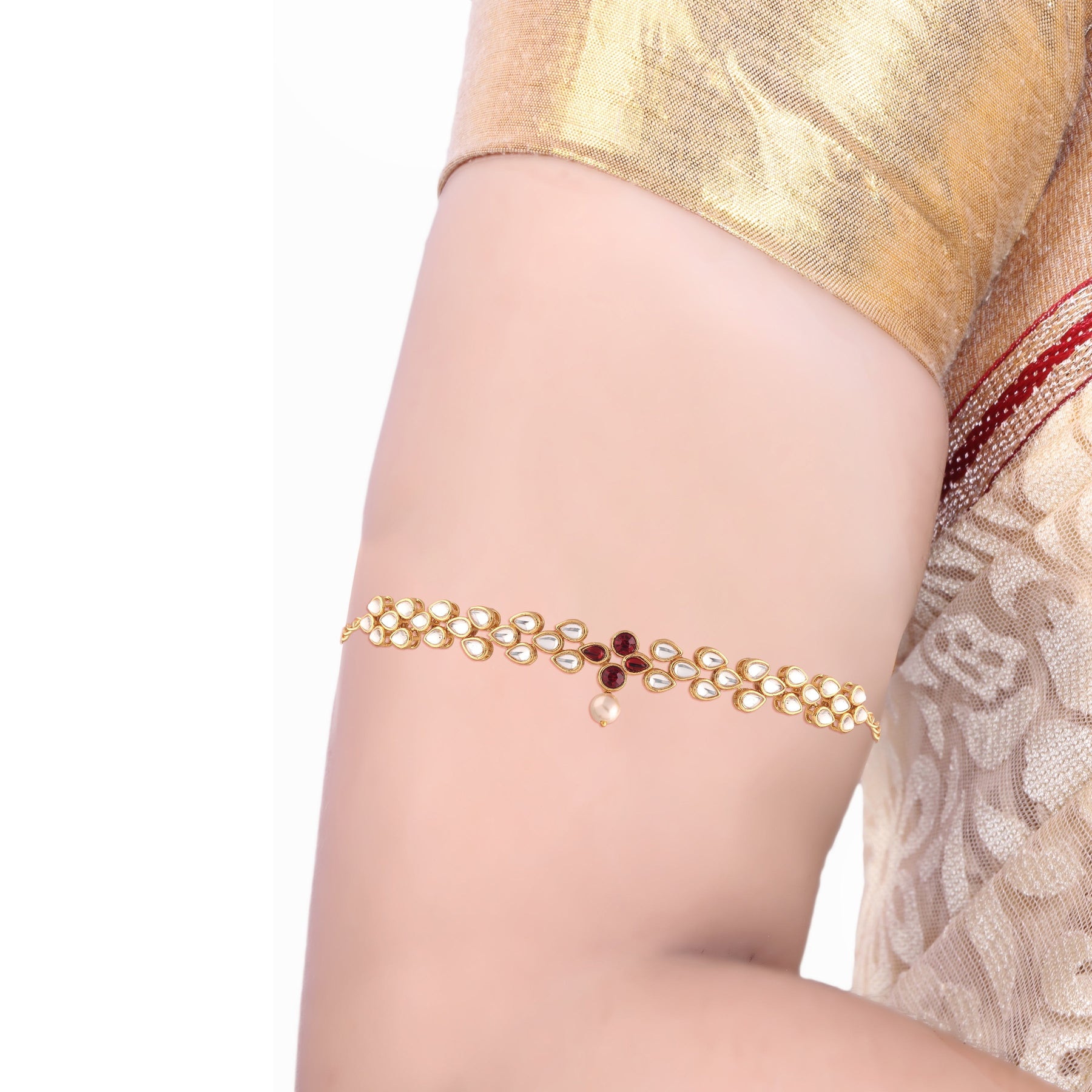 Bajubandhs Have Become Popular Because They Have An Ancient Charm To Them That Gives The Woman Wearing Them The Aura Of A Goddess. Our Adjustable Bajubandh Comes In A Gold Plated Finish With Stunning Stones. It Can Be Paired With Any Ethnic Attire. Perfect Accessory For Your Jewelry Collection!
