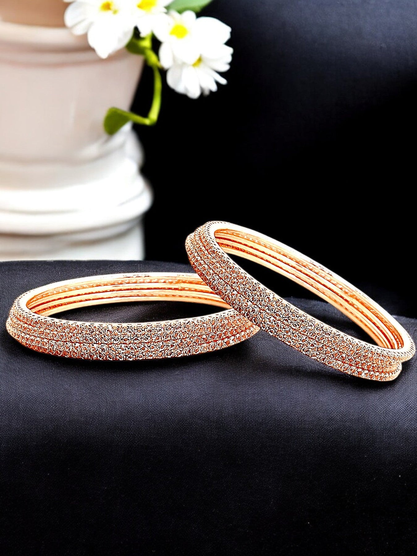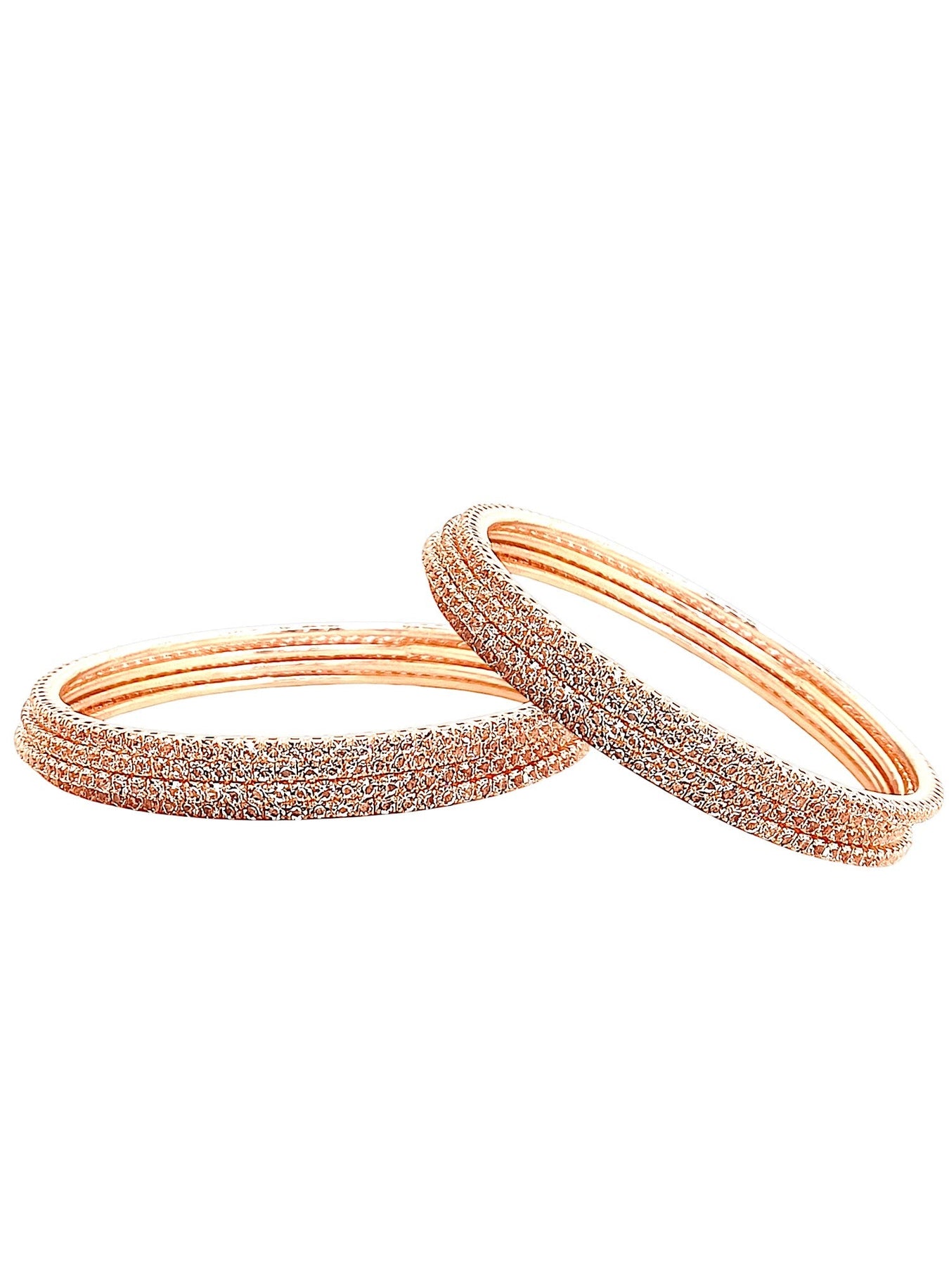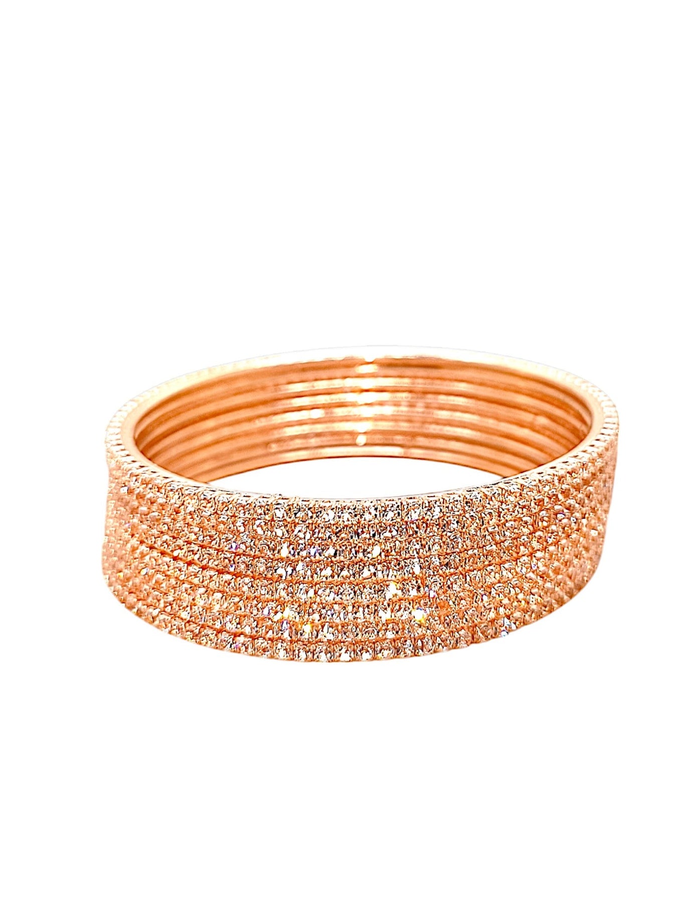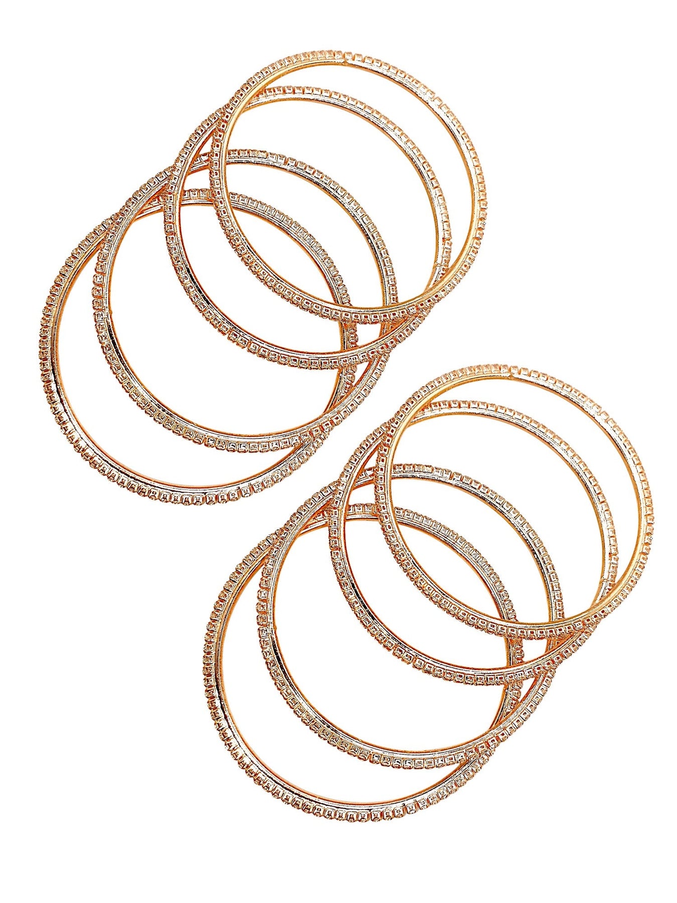 Set Of 8 Rose Gold Toned Cubic Zirconia Studded Bangle Set. Secured With Slip On Closure