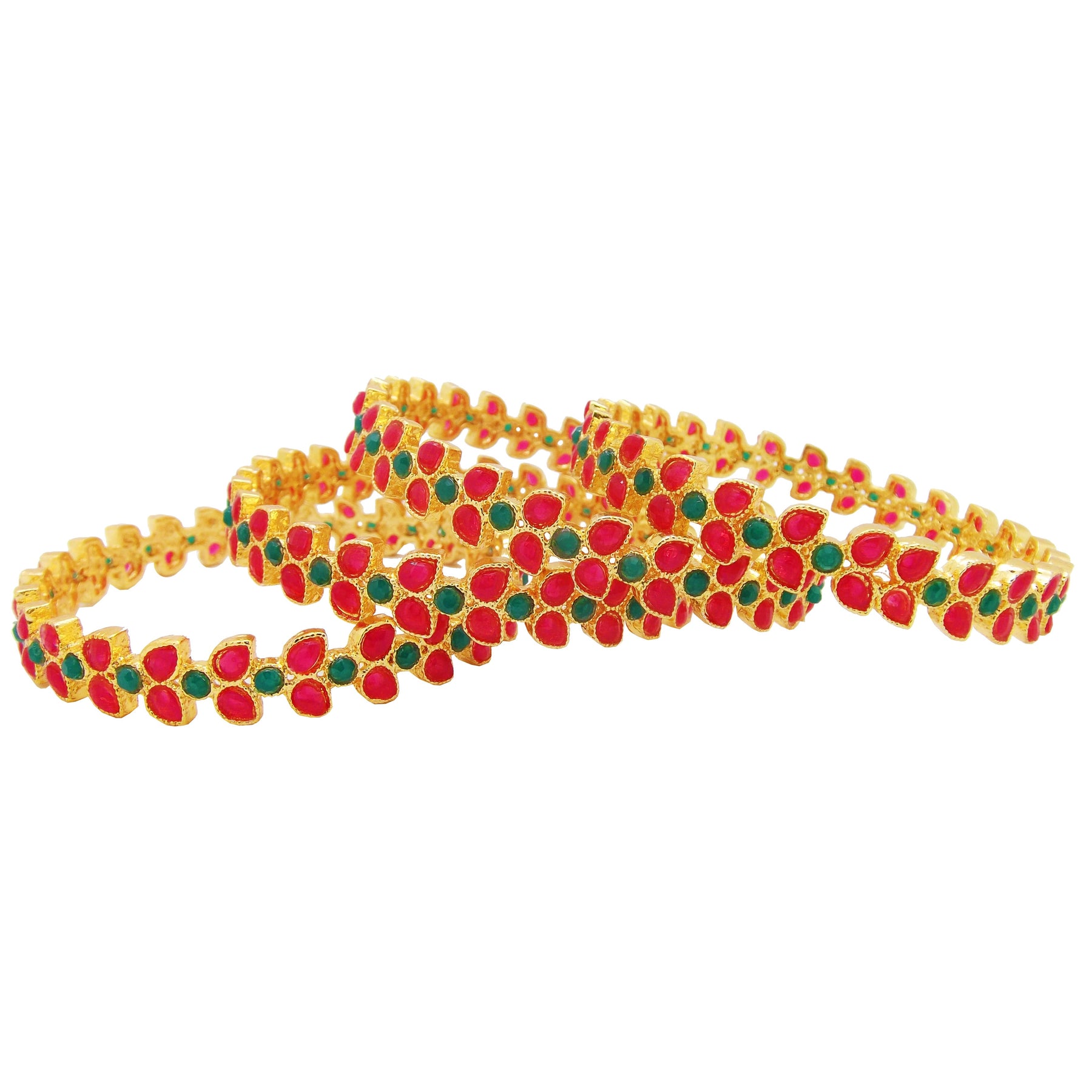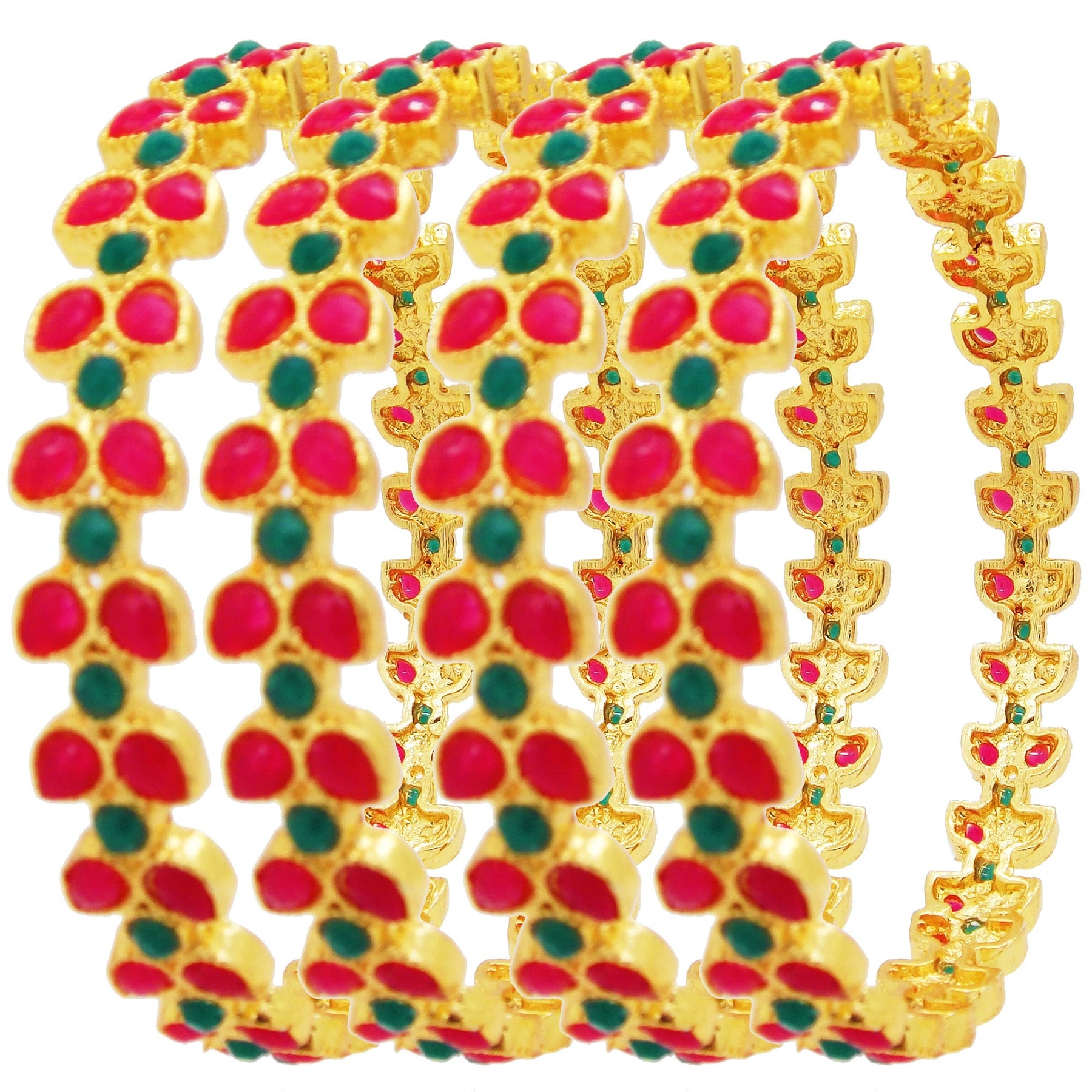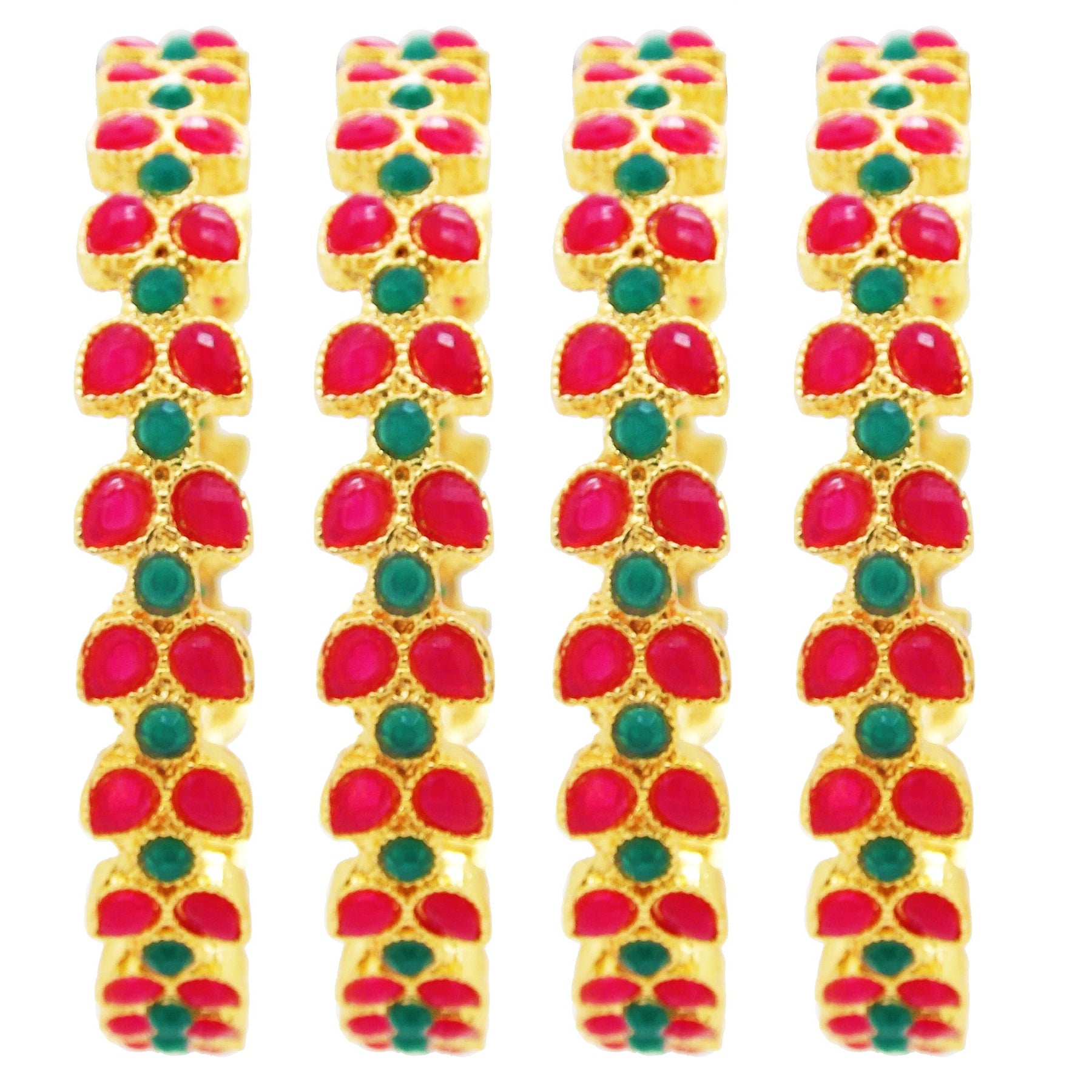 Floral Meenakari Gold Plated Multicolor Stud 4Pc Kada Bangle, That Can Be Worn At Any Occasion, Weddings, Parties And Ideal For Fashion Oriented Ladies. Size Available : 2.8 (2.5 Inch Inner Diameter - 7.8 Inch Circumference), Width-3.8Cm Condition: New Never Worn Contents : 4Pc
