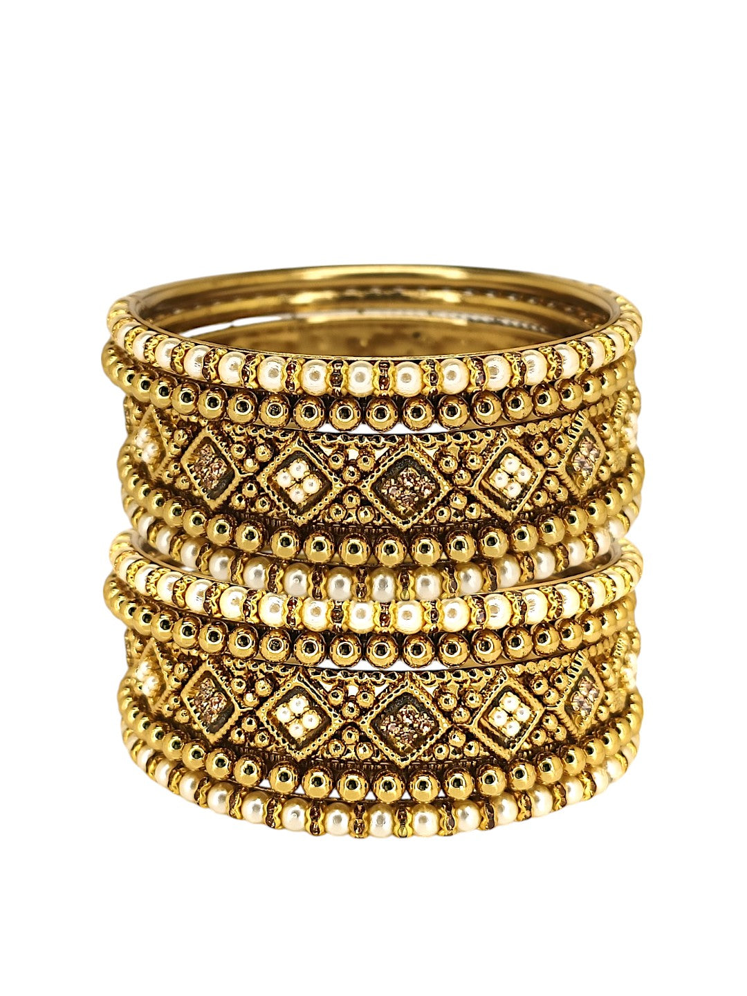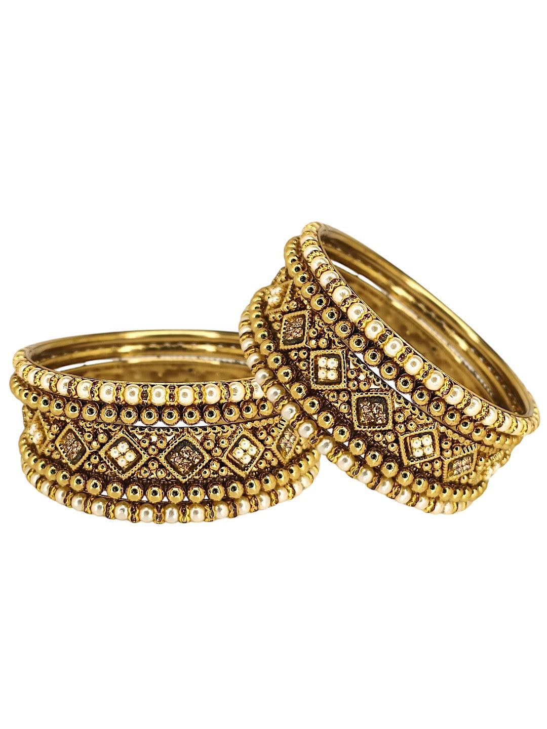 Set Of 10 Gold Toned Chuda Set Studded With Artificial Beads. Secured With Slip On Closure.