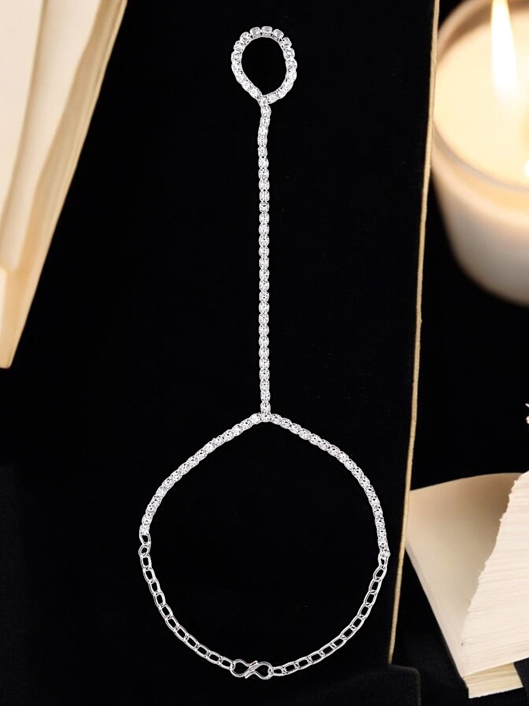 At The Center Of Attention Lies A Stunning Array Of Cubic Zirconia Stones, Meticulously Crafted To Radiate A Captivating Sparkle. Each Stone Is Intricately Set Within A Lustrous Silver-Plated Band, Creating A Harmonious Blend Of Elegance And Refinement.