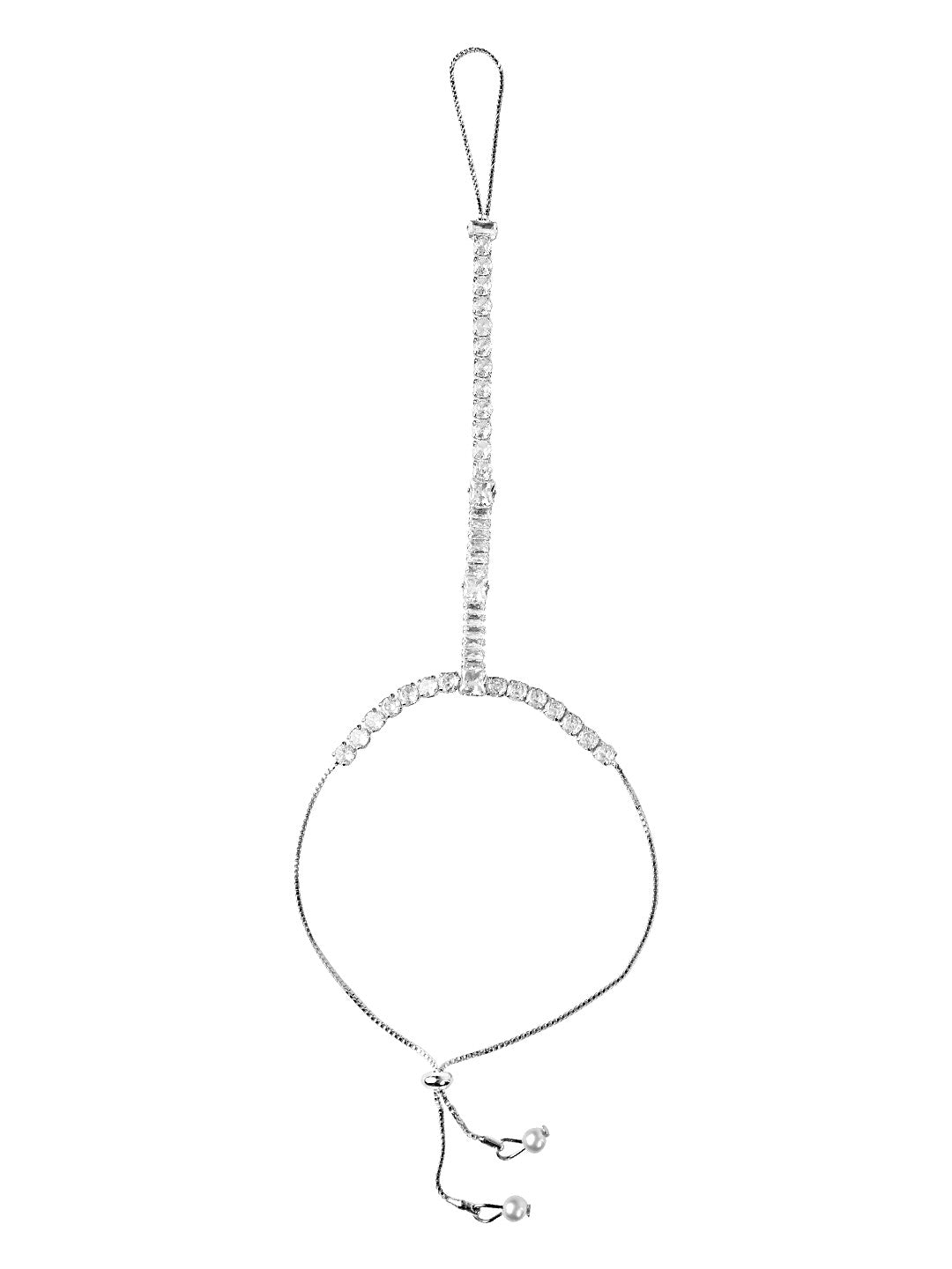 Women's Silver Plated Cz Stone Ring Bracelet