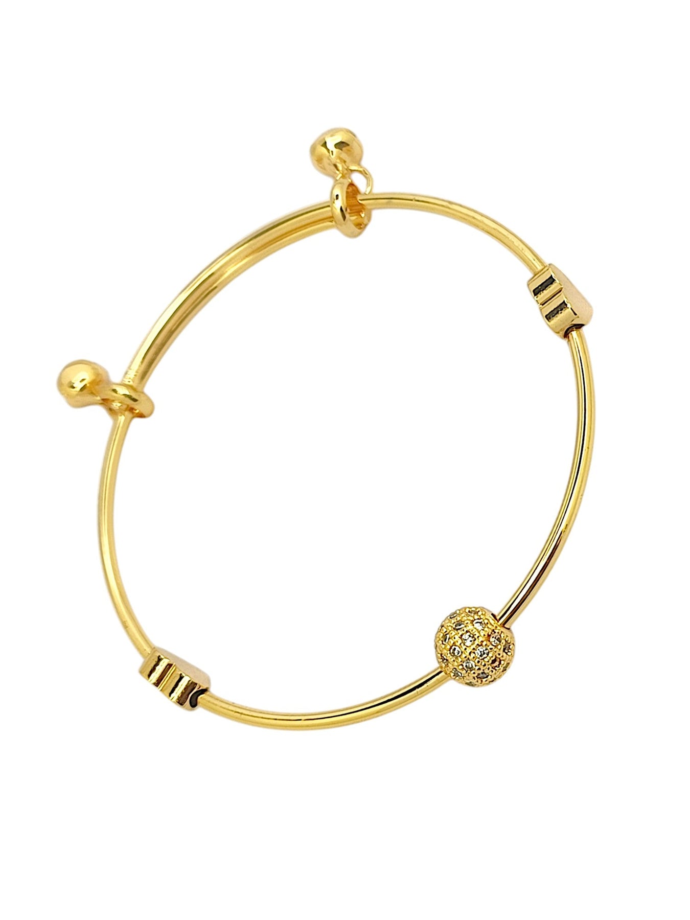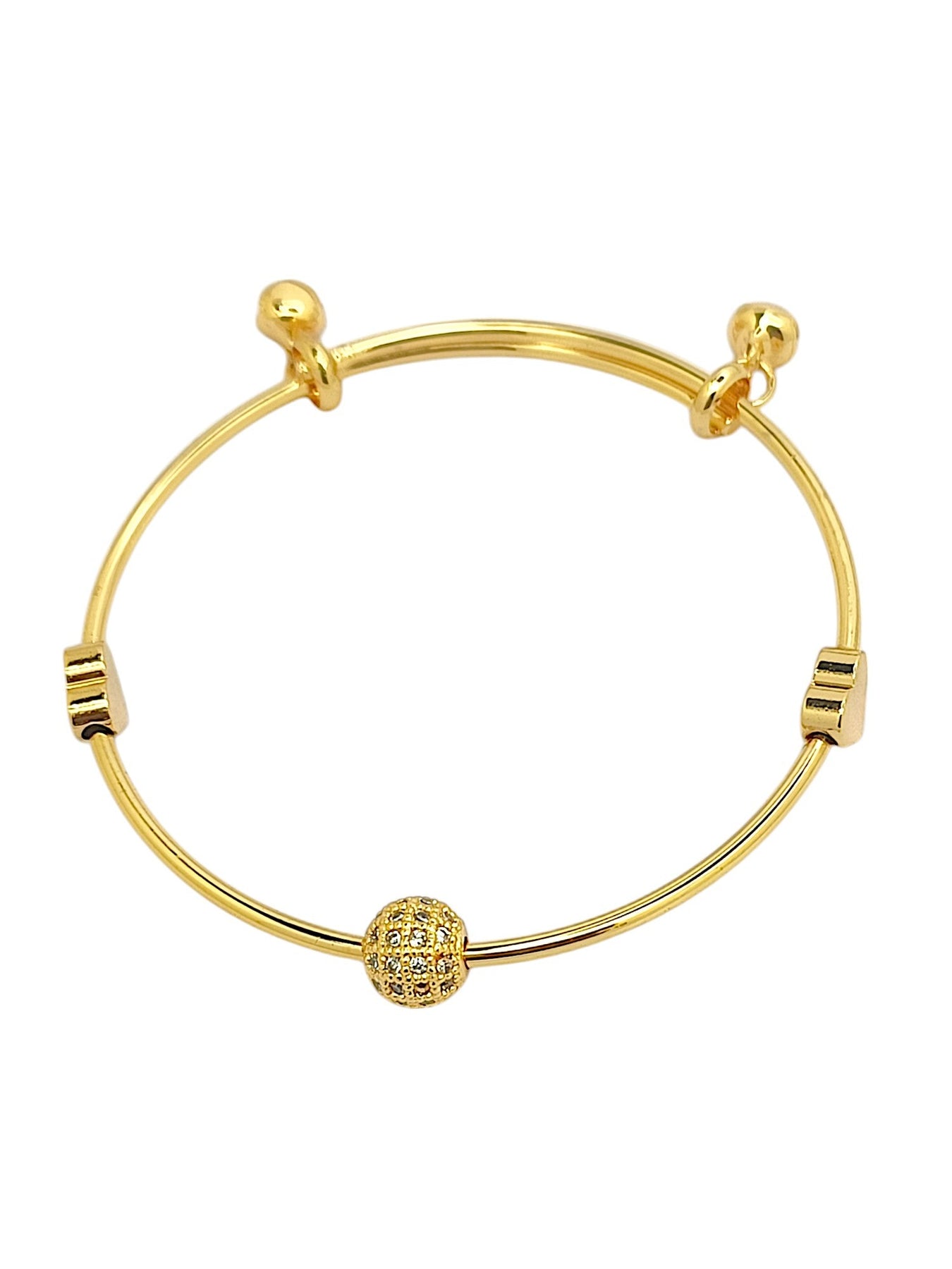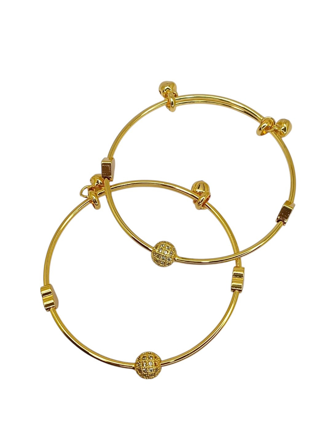 Gold-Toned Cz Studded 2 Pc Bangle-Style Bracelet. Secured With Slip-On Closure.Adjustable To Wrist Size.