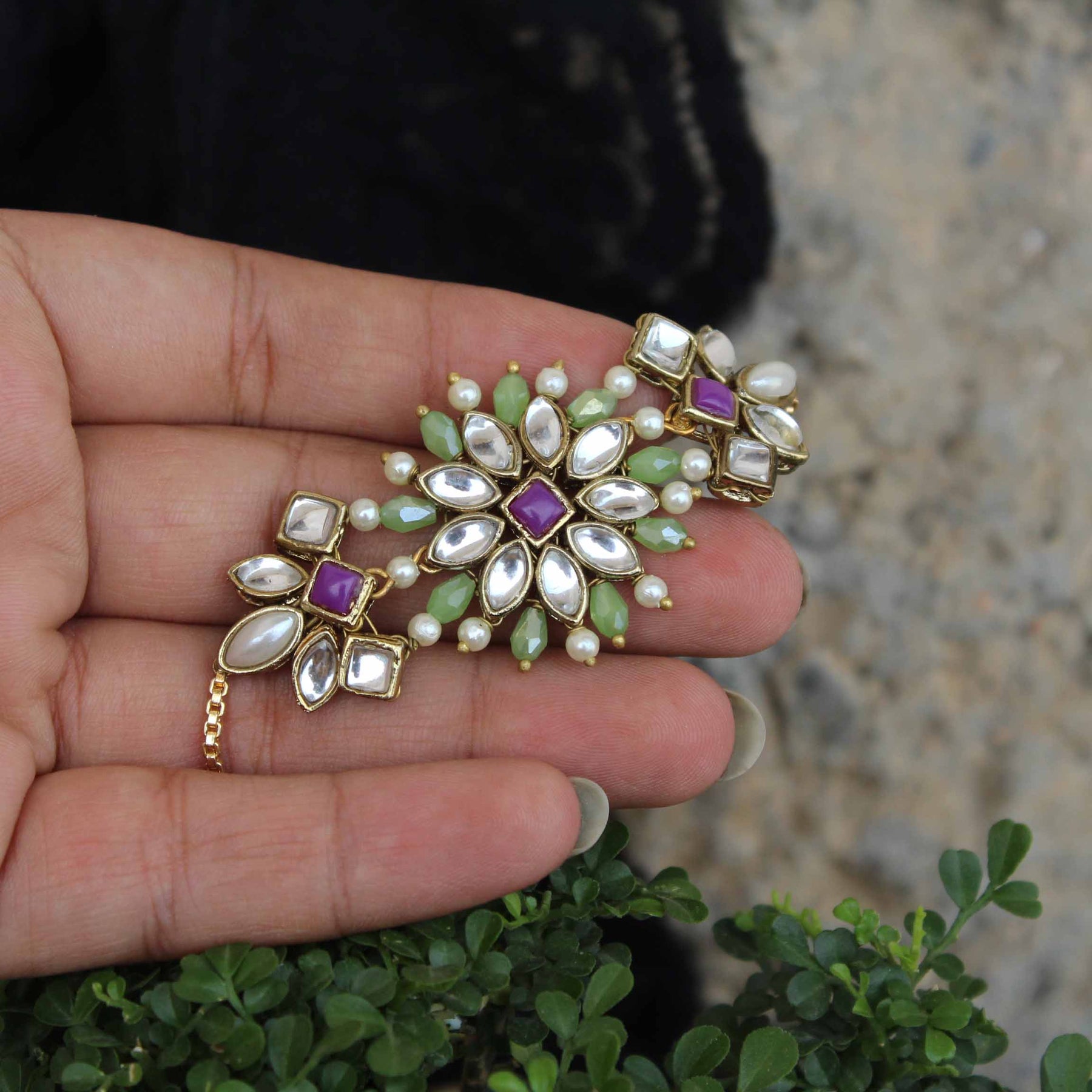Stones :White Glass Kundan & Green/White Glass Beads