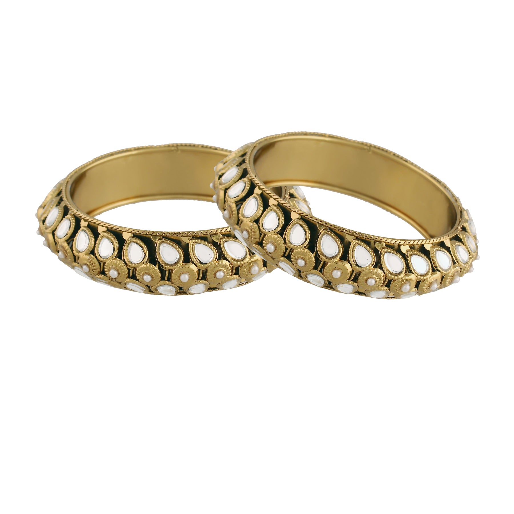 These Handmade Pearl Studded Kada Bangles Add A Hint Of Raw Ethnic Beauty To Any Look. Representing A Classic Fusion Of Exquisite Craftsmanship And Feminine Elegance, This Set Will Definitely Be A Treasured Inclusion In Every Woman'S Jewellery Collection. (Pack Of 2 Pcs) Available Sizes- 2.4,2.6,2.8.