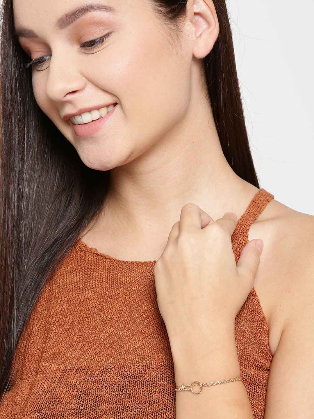 Carlton London Rose Gold-Plated CZ Dual strand Bracelet For Women