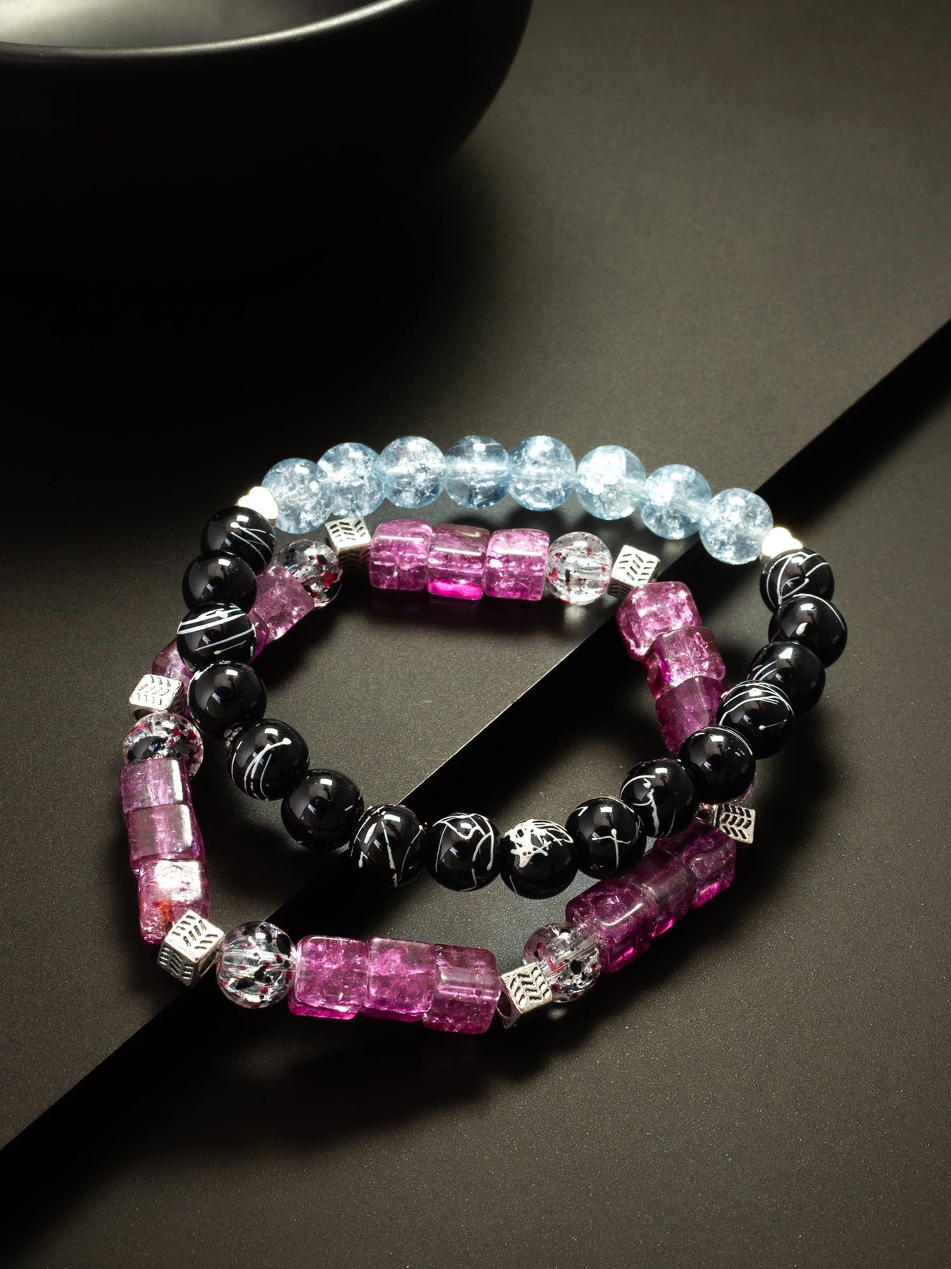 1. This Elegant Bracelet Features A Combination Of Pink And Black Beads, Creating A Stylish And Versatile Accessory That Can Easily Complement Any Outfit. Handcrafted With Care, This Bracelet Is Perfect For Adding A Pop Of Color To Your Ensemble. Made With High-Quality Materials, This Piece Is Both Durable And Fashionable, Making It A Must-Have Addition To Your Jewelry Collection.