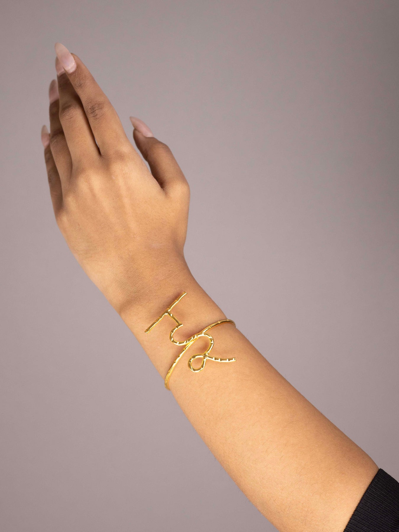 Akshar Bracelet 2 Color :Gold Material :Brass Closure :Hoop Care Instructions :Keep Away From Moisture Weight :0.5G