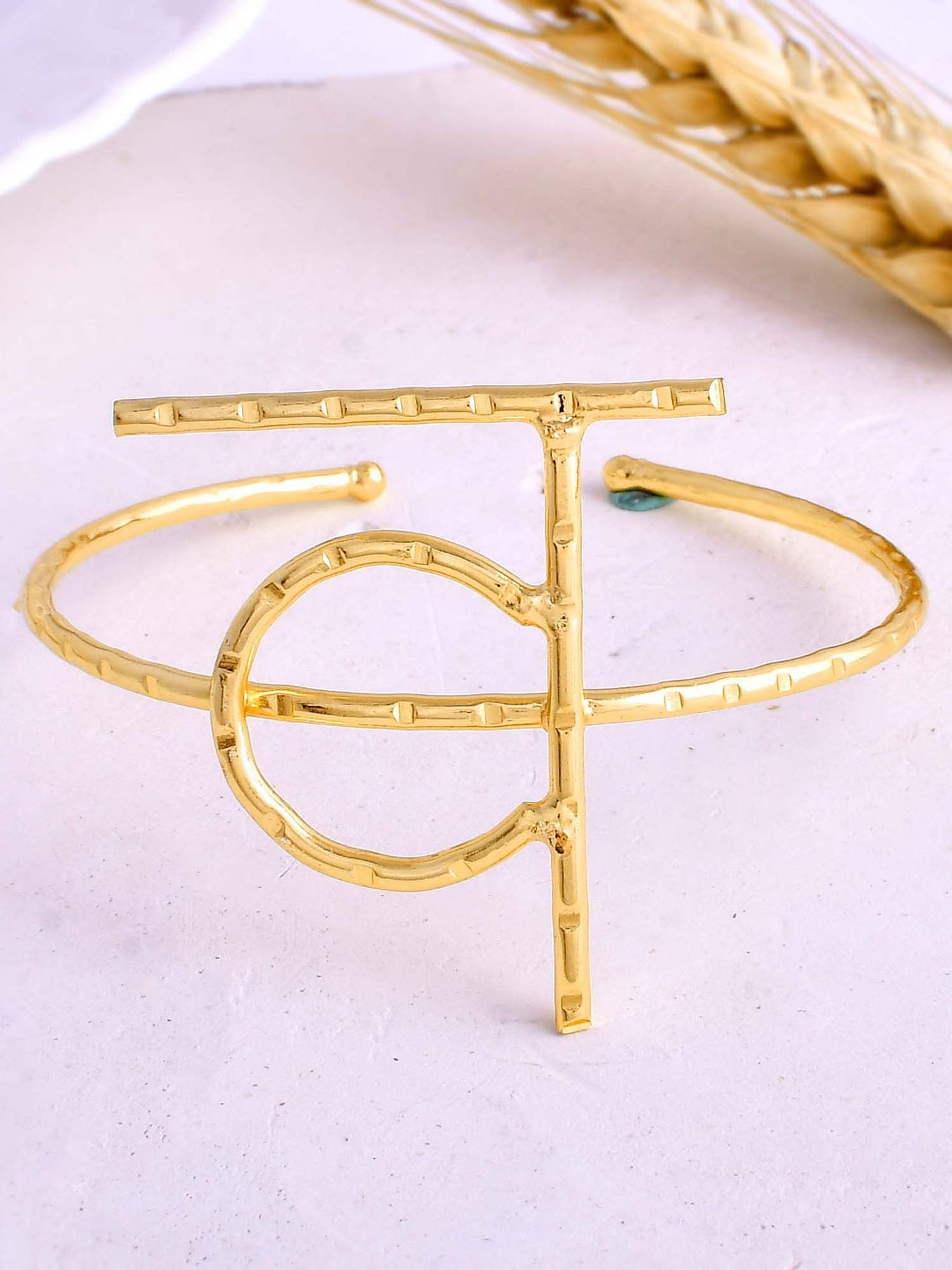 Akshar Bracelet 23 Color :Gold Material :Brass Closure :Hoop Care Instructions :Keep Away From Moisture Weight :0.5G