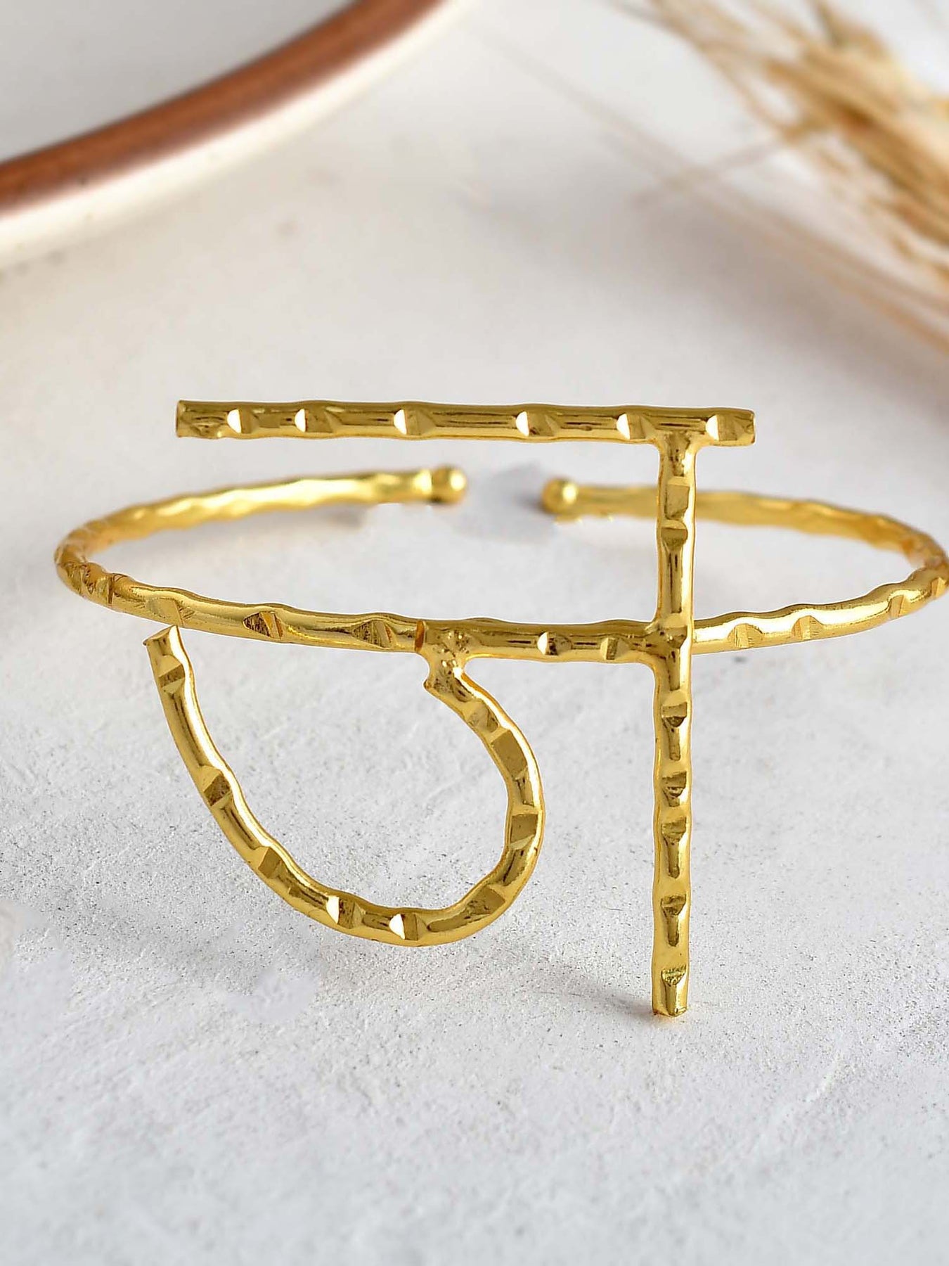 Akshar Bracelet 8 Color :Gold Material :Brass Closure :Hoop Care Instructions :Keep Away From Moisture Weight :0.5G
