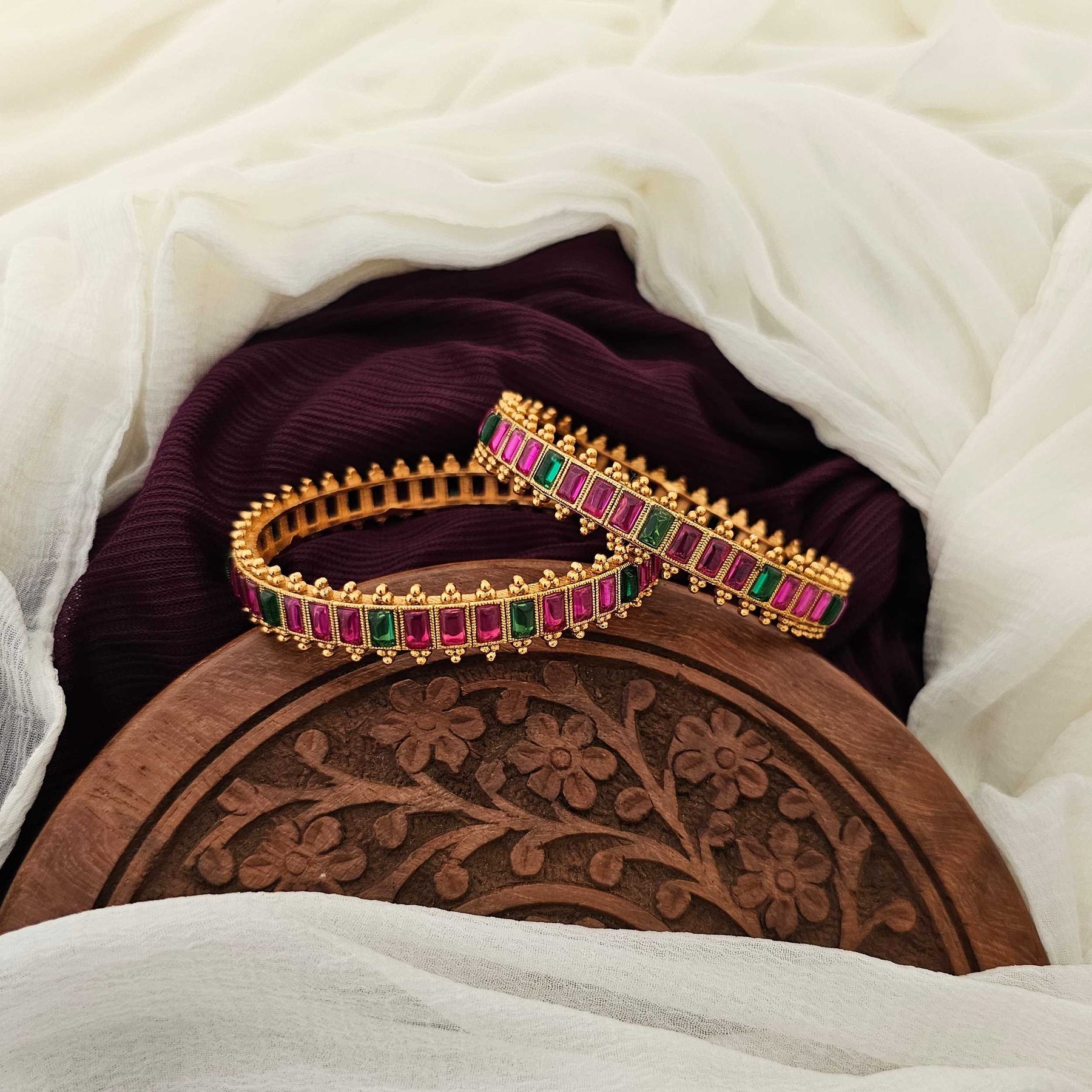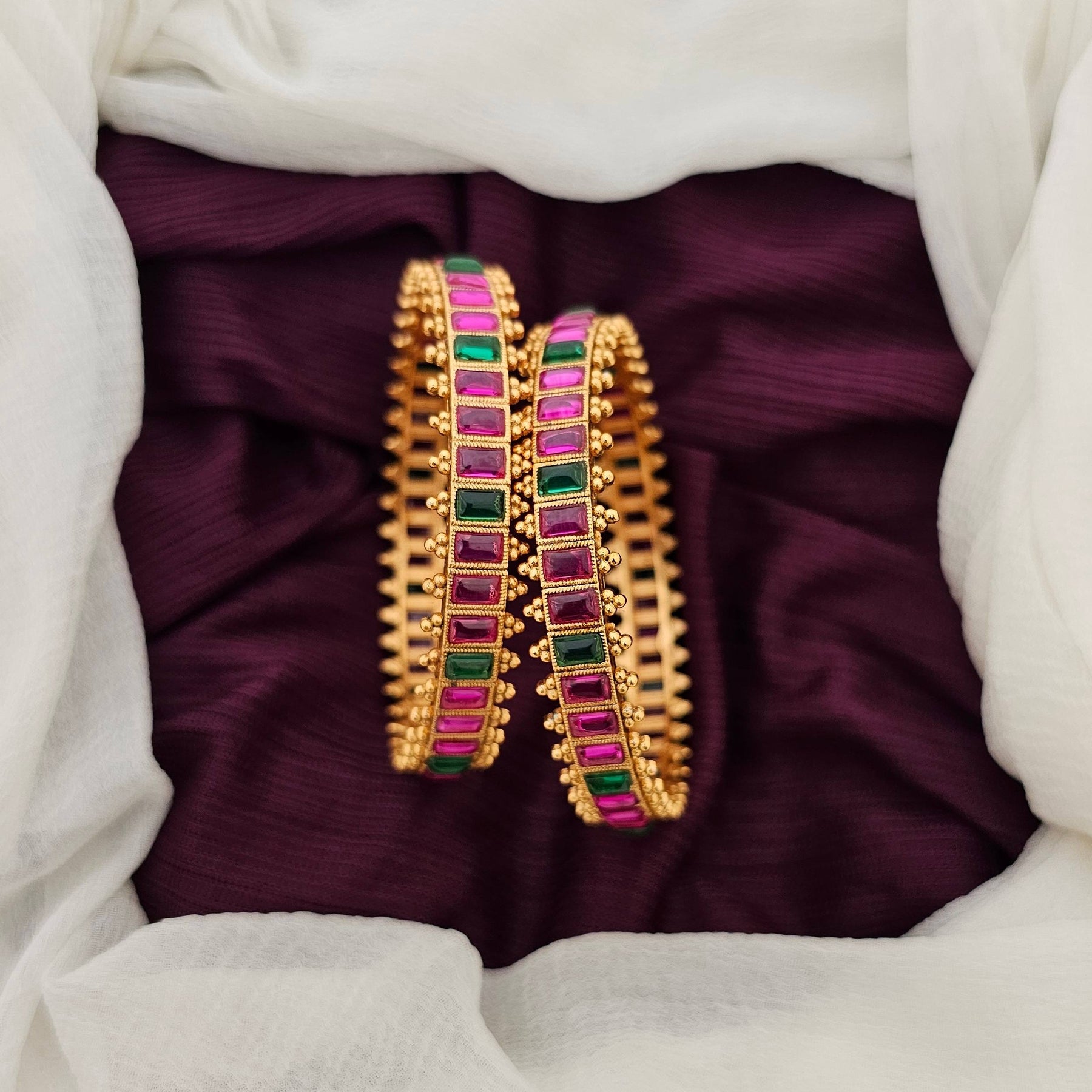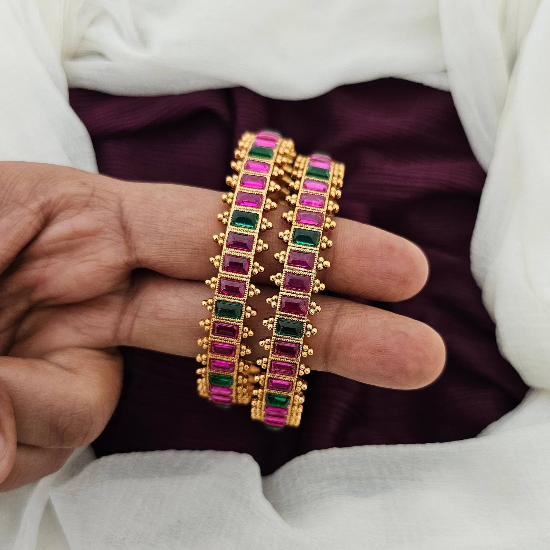 An Unique Bangles Crafted With Kemp & Green Stones By Chendhur Collections