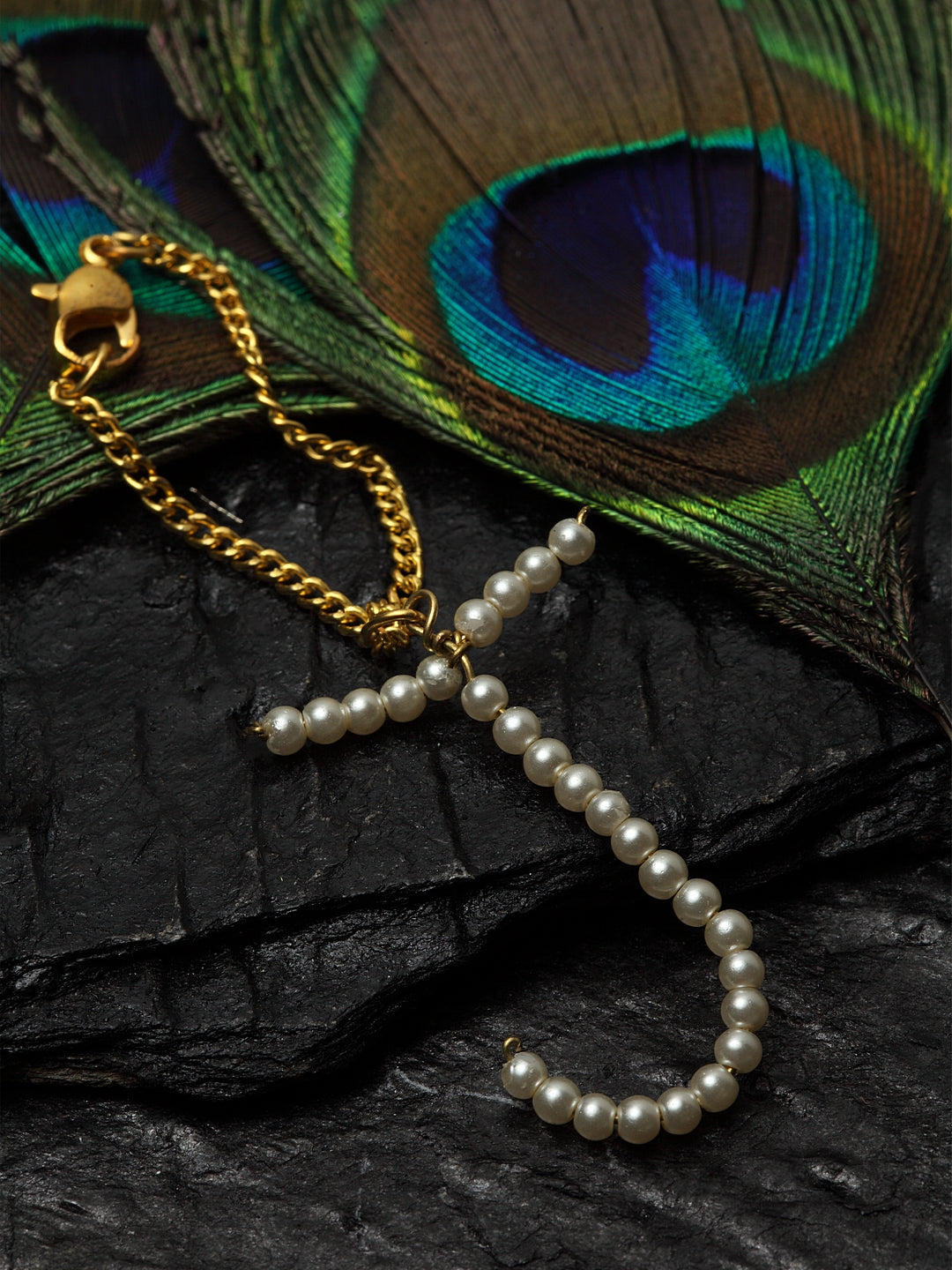 White & Watch Charm Bracelet With Pearls &; Category Of Jewellery Is Hand Jewellery; Sub Category Is Watch Charm; Ideal For Women; Base Color Is White; Gemstones Used - Pearls; Plating Is Gold-Plated; Base Metal Is Alloy; Other Material Used - ; Size Is Freesize; Adjustable - No; Weight Is 5 Gms; Mesaurements - Length Of Watch Charm Letter =8 Cm; Width Of Watch Charm Letter = 2.5 Cm; Diameter Of Watch Charm =2.23 Cm; Circumference Of Watch Charm = 7 Cm; Content