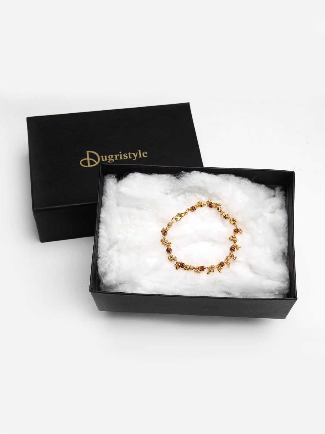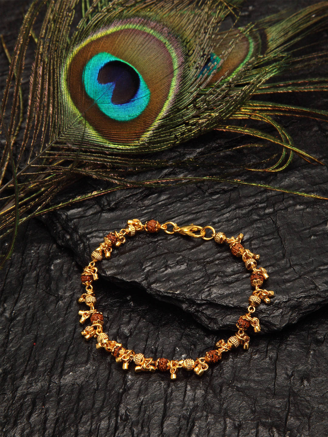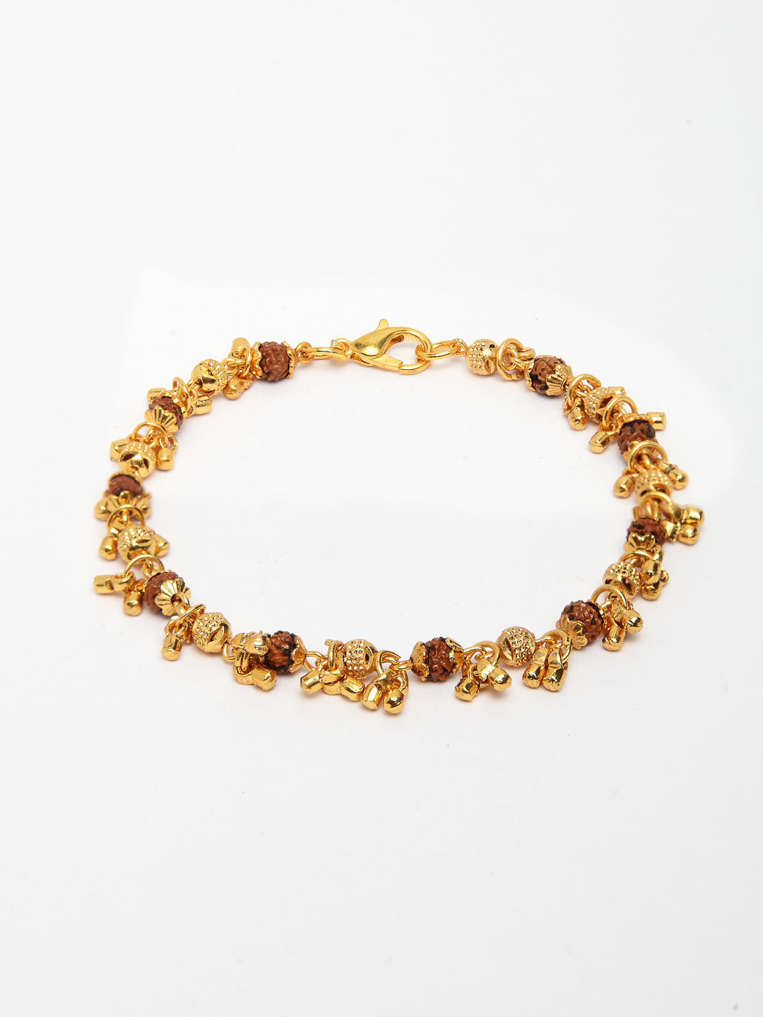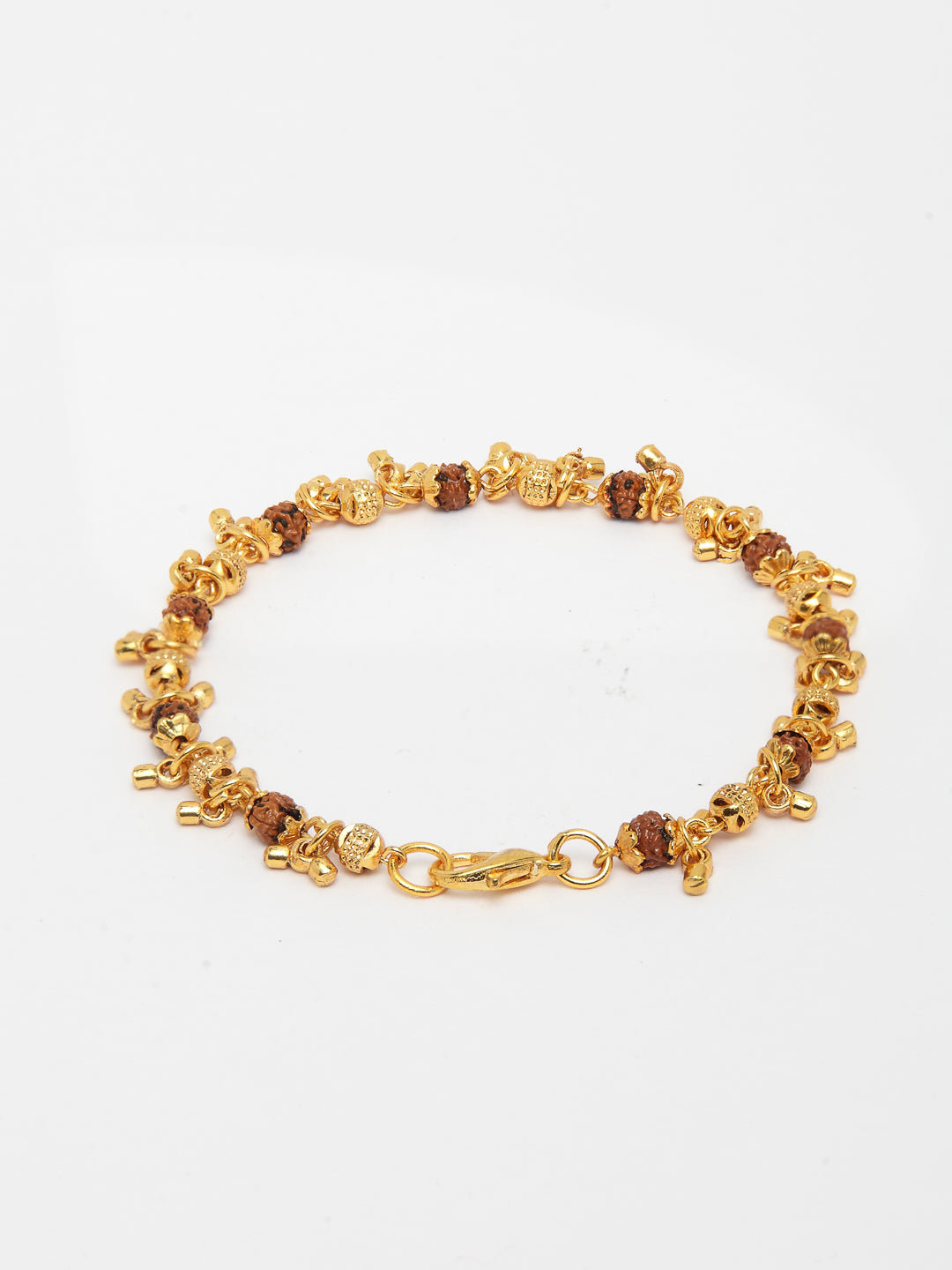 Gold & Bracelet With Rudraksh &; Category Of Jewellery Is Hand Jewellery; Sub Category Is Bracelets; Ideal For Women; Base Color Is Gold; Gemstones Used - Rudraksh; Plating Is Gold-Plated; Base Metal Is Alloy; Other Material Used - ; Size Is 2.6; Adjustable - No; Weight Is 8 Gms; Mesaurements - Width Of Bracelet = 1 Cm; Bracelet Diameter (Cm) =6.03 Cm; Circumference Of Bracelet = 18.95 Cm; Content