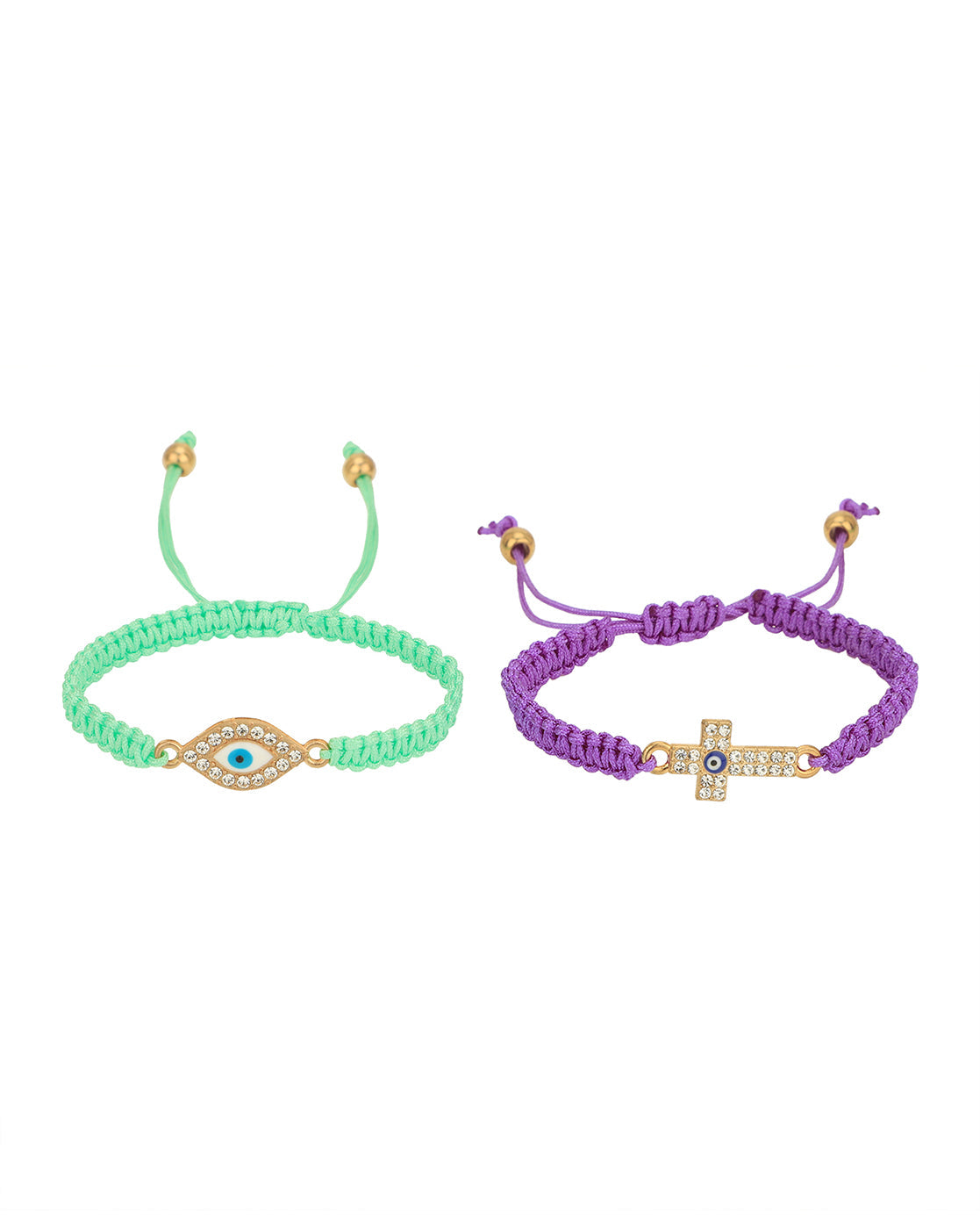 Set of 2 Gold Plated CZ Evil Eye Adjustable Bracelet for women