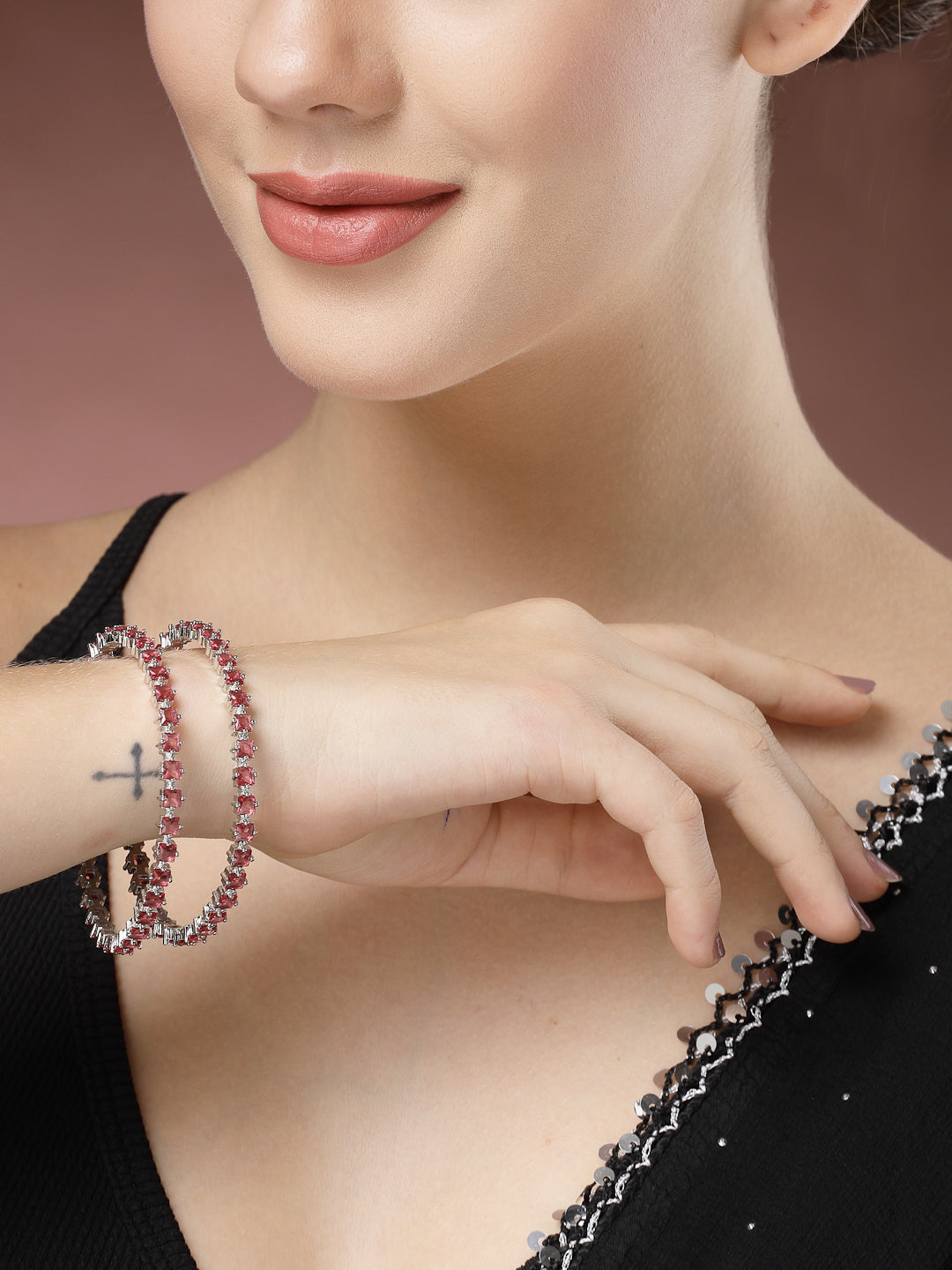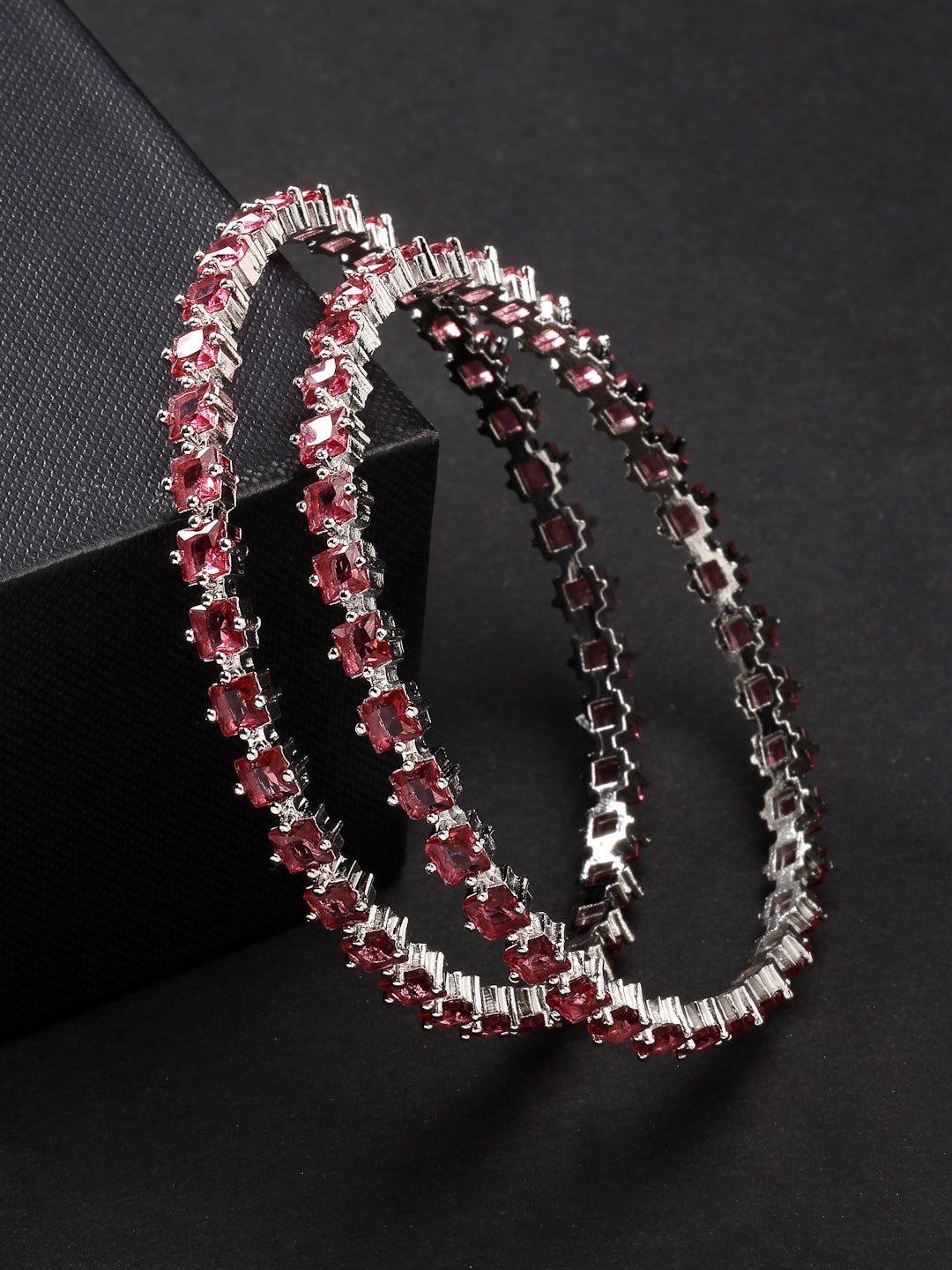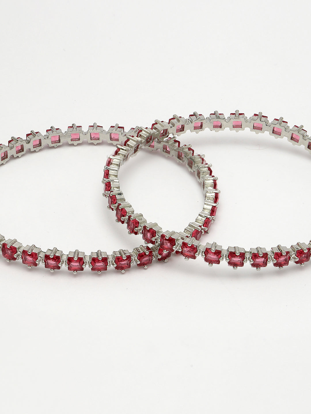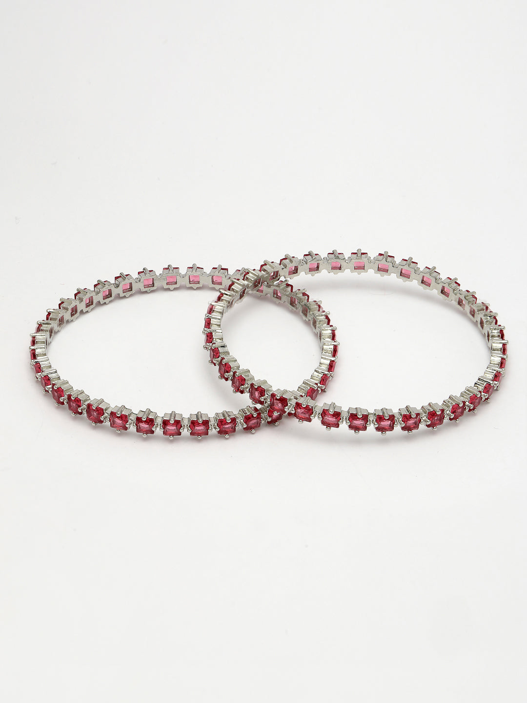 Style Note: The NVR Women Set of 2 Pink CZ Stone-Studded Handcrafted Bangles is a vibrant and elegant choice for accessorizing. Each bangle in this set is meticulously handcrafted and adorned with sparkling pink CZ (Cubic Zirconia) stones, adding a touch of glamour and femininity to any outfit. These bangles are perfect for both casual and formal occasions, bringing a pop of color and sophistication to your ensemble. With their intricate design and shimmering stones, they symbolize beauty and grace, enhancing your style with a luxurious appeal that stands out. Ideal for celebrating individuality and adding a radiant charm to your look, these handcrafted bangles are a statement piece in any jewelry collection.
