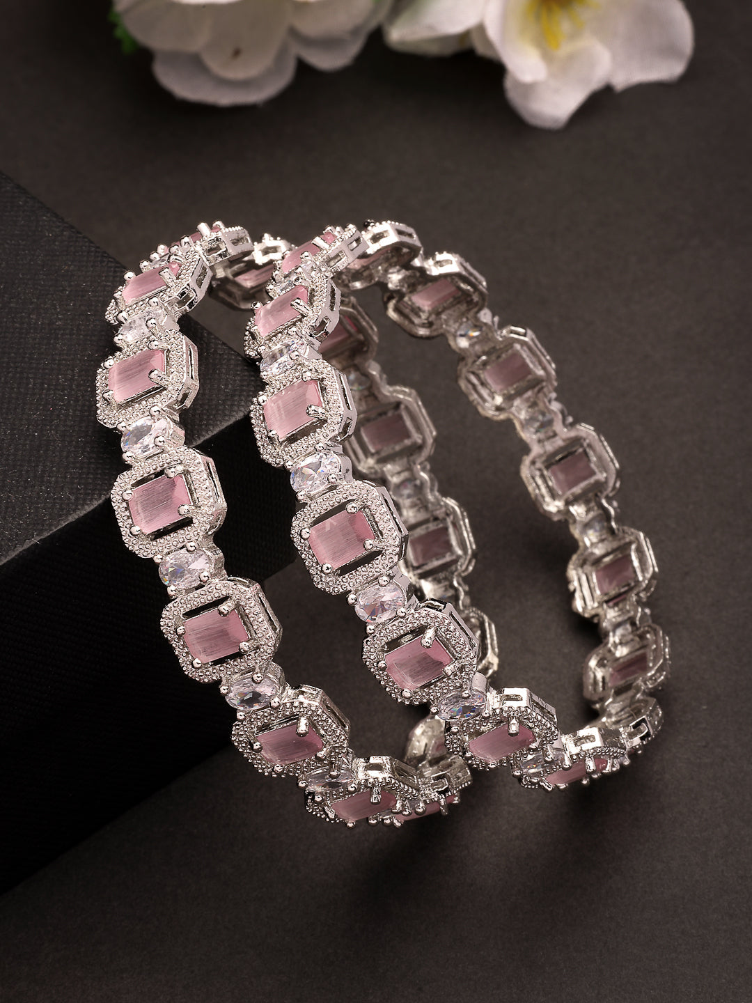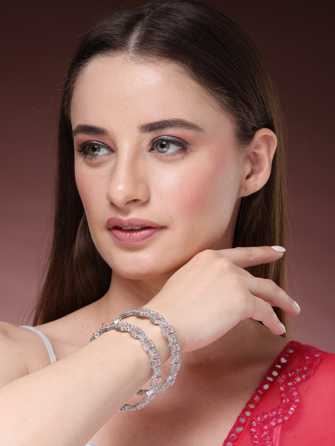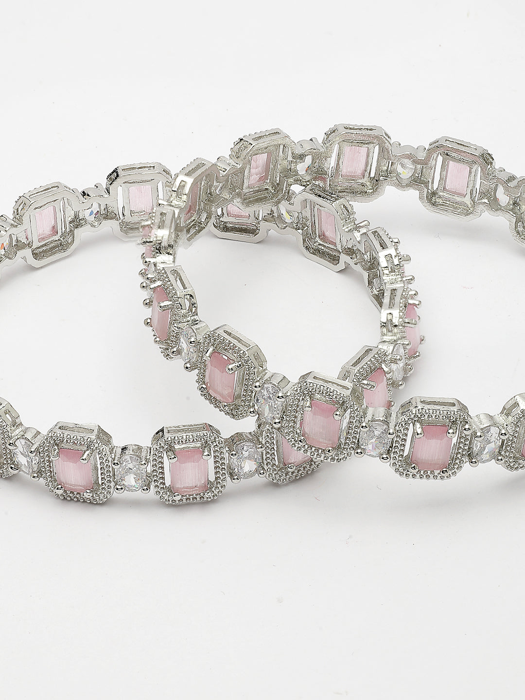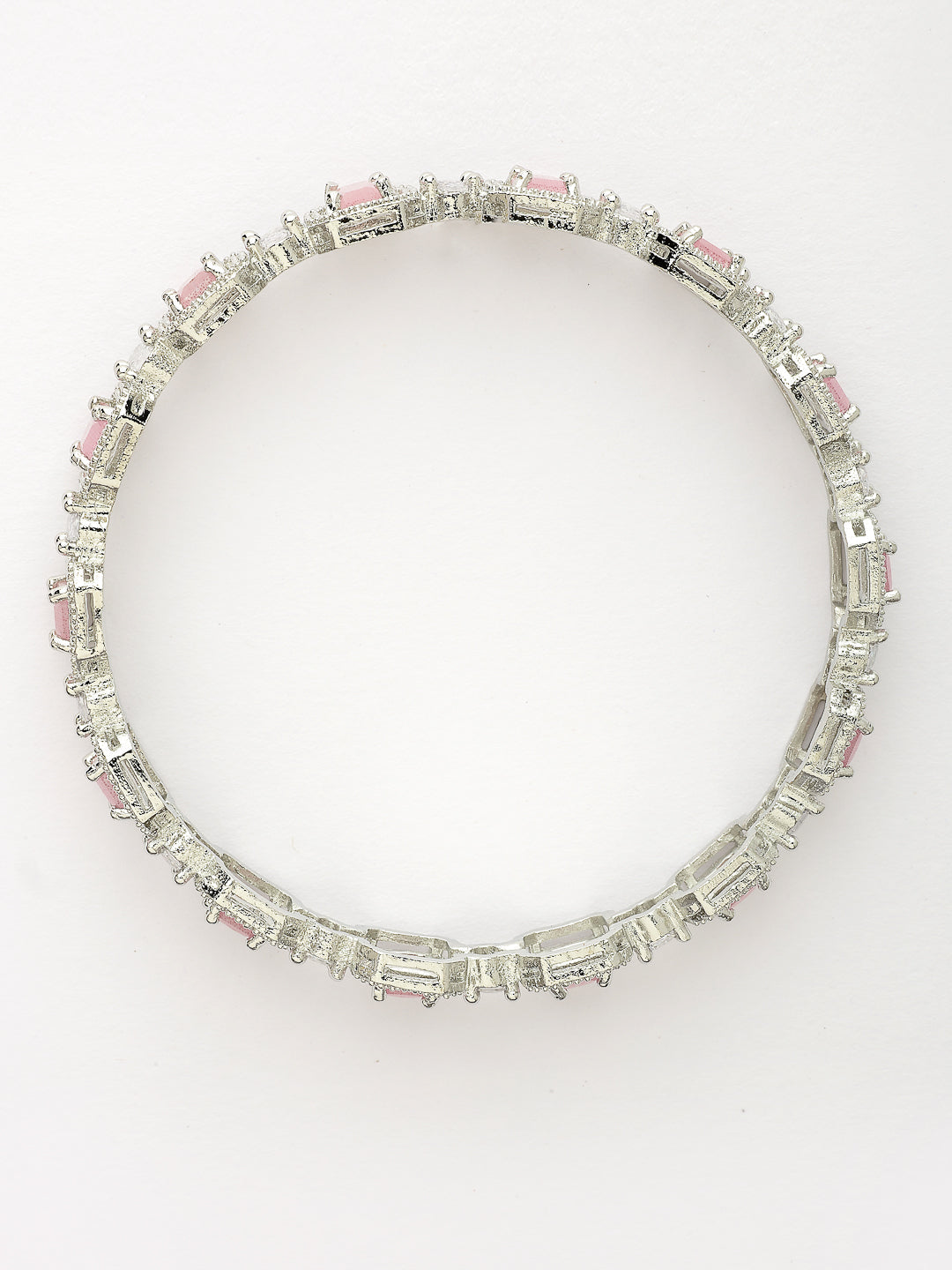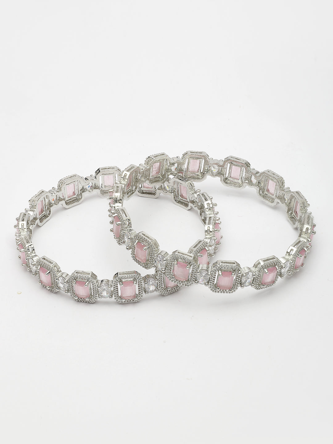 Style Note: The Nvr Women's Set Of 2 Silver-Plated Pink Ad-Studded Bangles Adds A Touch Of Vibrant Elegance To Any Jewelry Collection. Featuring A Sleek Silver-Plated Finish, Each Bangle Is Adorned With Striking Pink American Diamonds, Offering A Bold Yet Refined Look. The Pink Stones Provide A Pop Of Color, Making These Bangles Perfect For Adding A Stylish Accent To Both Everyday Outfits And Special Occasions. Lightweight And Comfortable, They Are Ideal For Layering Or Wearing Alone For A Sophisticated Touch. This Set Combines Modern Charm With Classic Appeal, Making It A Chic And Versatile Addition To Your Accessory Lineup.