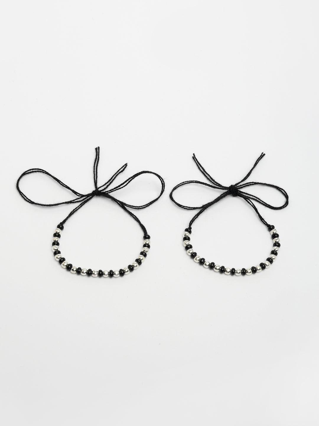 Kids Set Of 2 Rhodium-Plated Beaded Wraparound Nazariya Bracelet
