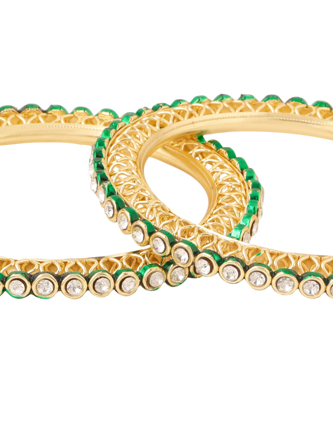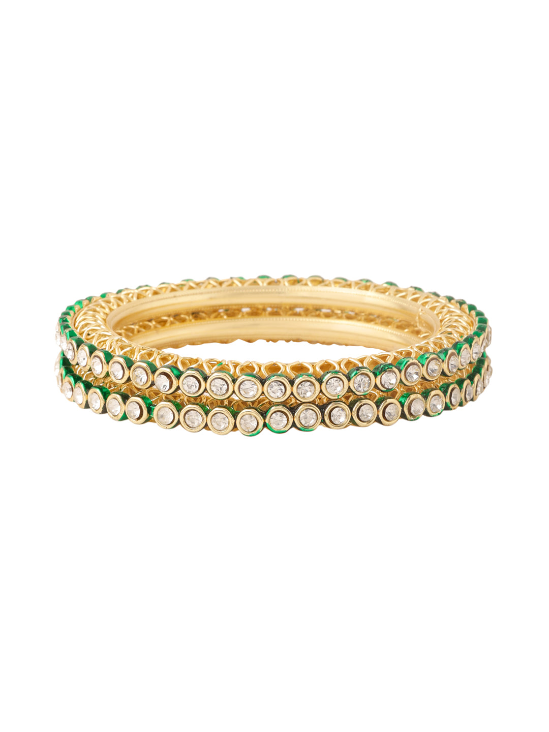 Women's Set Of 2 Gold Plated Green Kundan Studded Bangles