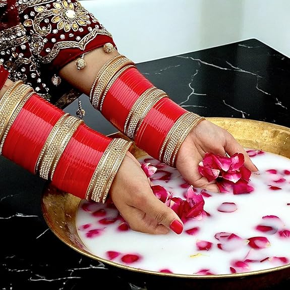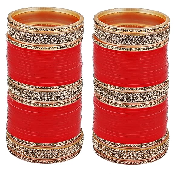 Bridal Bangle Set Dhanteras/Diwali/Bhai Dooj Collection Wedding Punjabi Chuda Designer Chura, Red Acrylic Choora Set