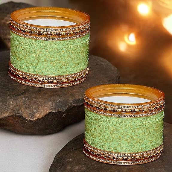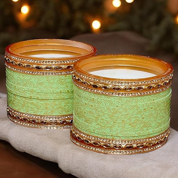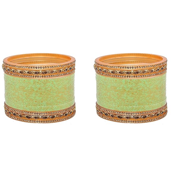 Bridal Bangle Set Wedding Punjabi Chuda Designer Chura Cz Stone With Kundan Stone Pista Color Small Size Choora