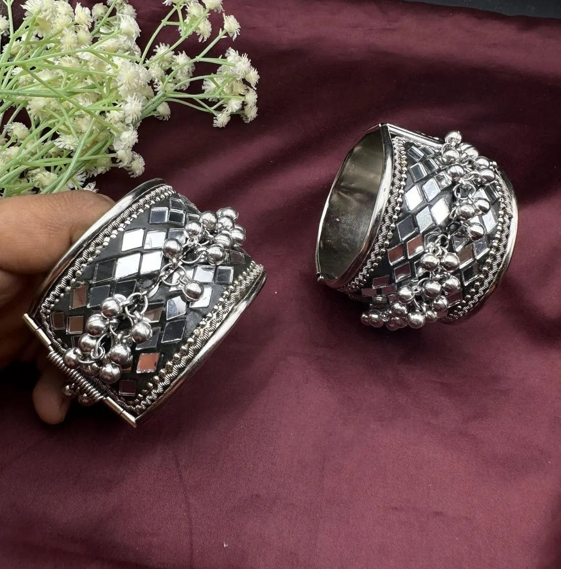 This Elegant Oxidised Bangle Comes In A Pair Of Two, Which Will Definitely Be A Showstopper That