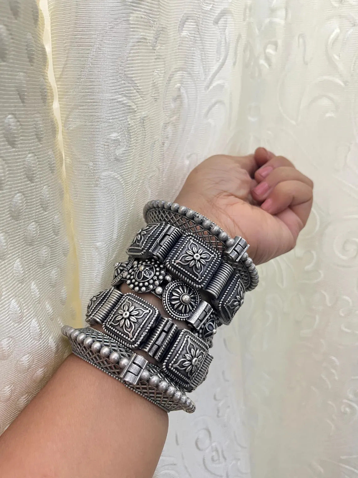 Women's Kada Set Of 5 Antique Bangle Indian Vintage Hand Jewellery Silver Plated Hand Kada Bracelet Silver Look Openable Kada