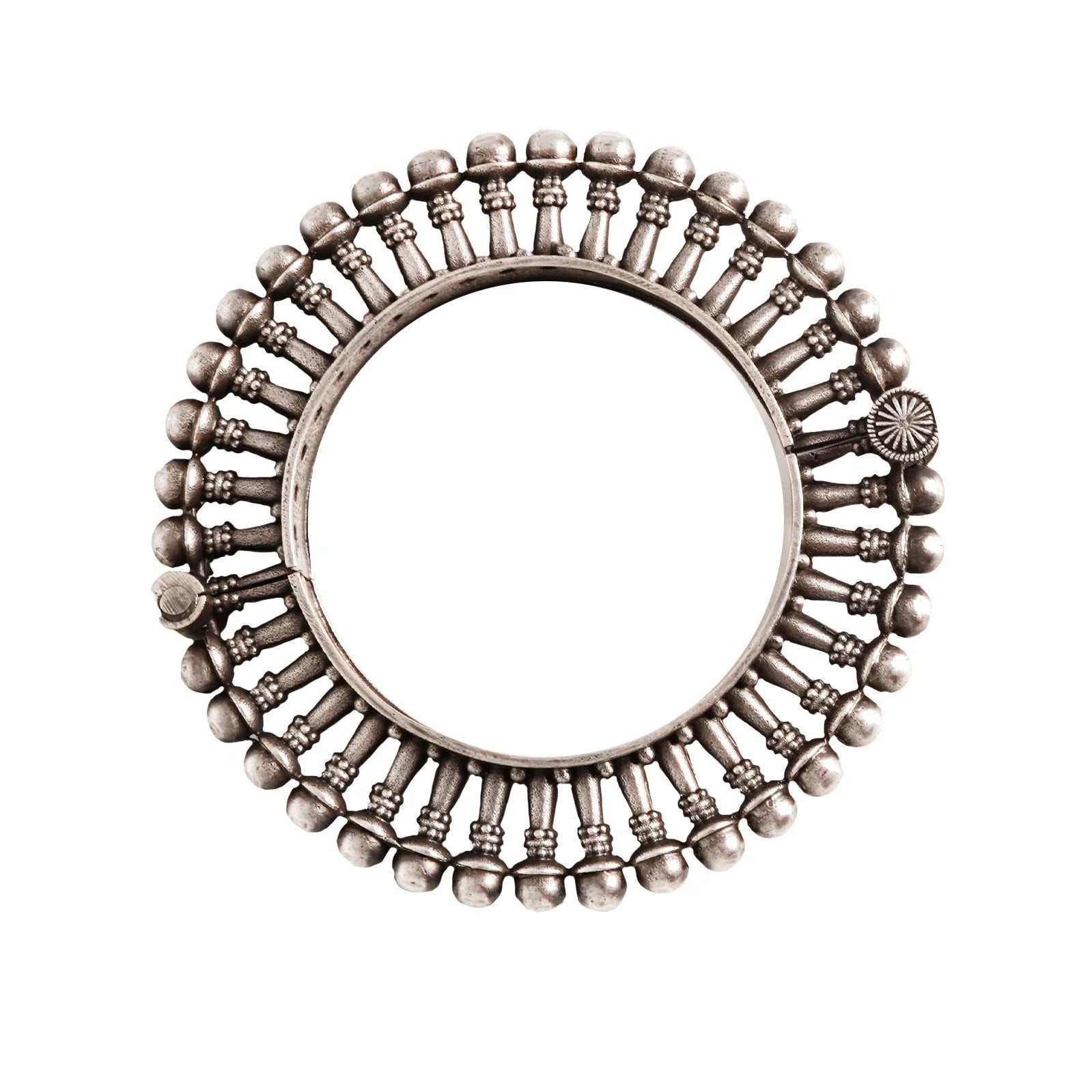 This Silver Oxidised Stacked Bracelet Set By Vastrabhushan Is The Perfect Adornment For A Graceful, Elegant Look, Seamlessly Transitioning From Fusion To Traditional Styles. The Set Includes A Beautifully Crafted Bangle And Haathphool, Both Featuring Intricate Designs And Secure Screw & Hinge-Lock And Lobster Clasp For A Comfortable Fit. Ideal For Adding A Touch Of Sophistication To Your Outfit, This Versatile Set Is Perfect For Day-To-Day Wear Or Special Occasions.