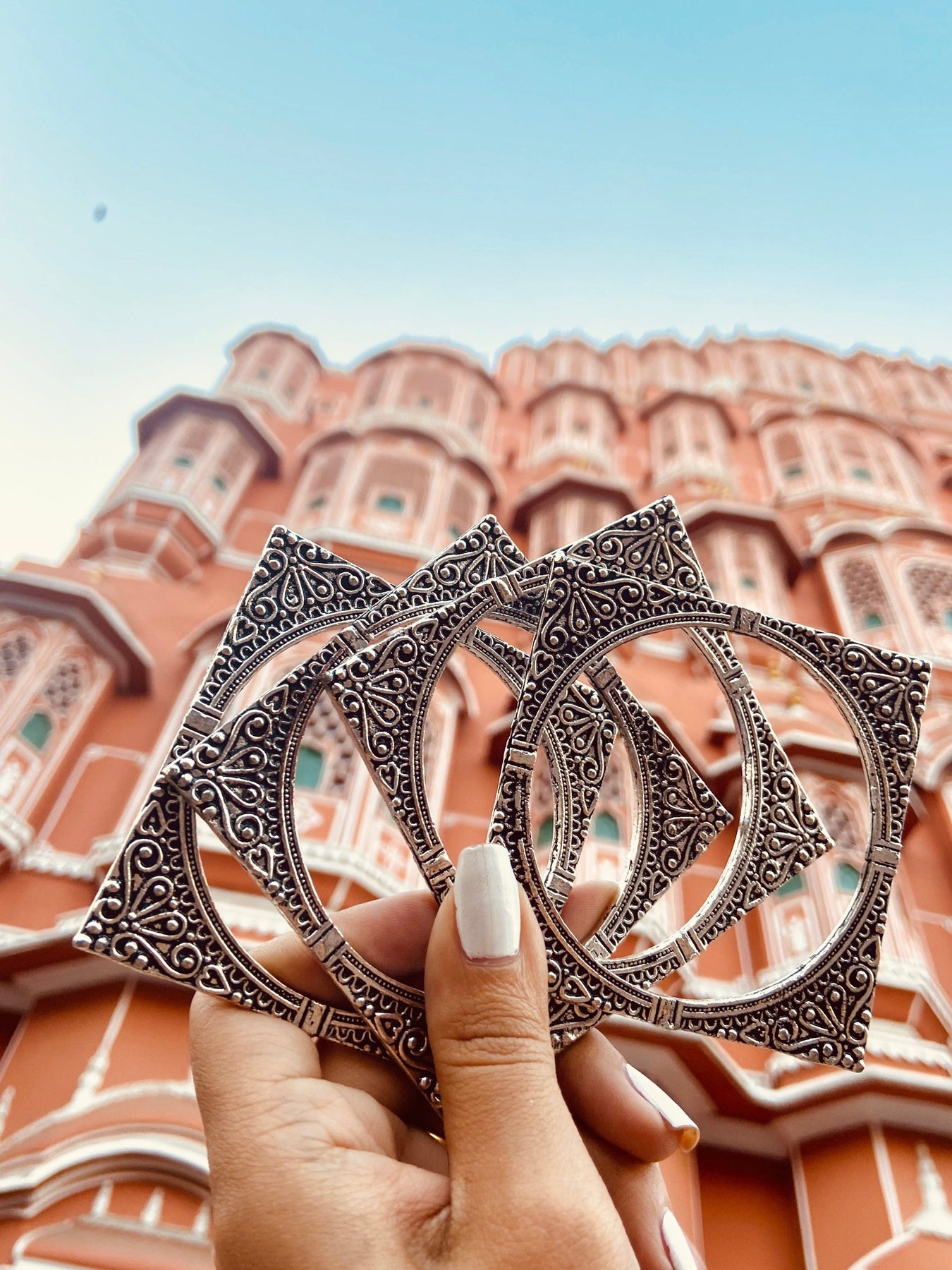 Women's Silver Oxidised Sleek Square-Shaped Handcrafted Bangles