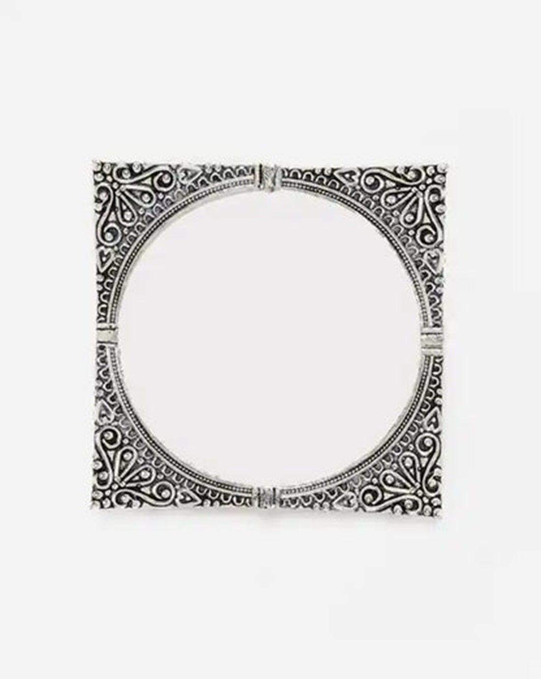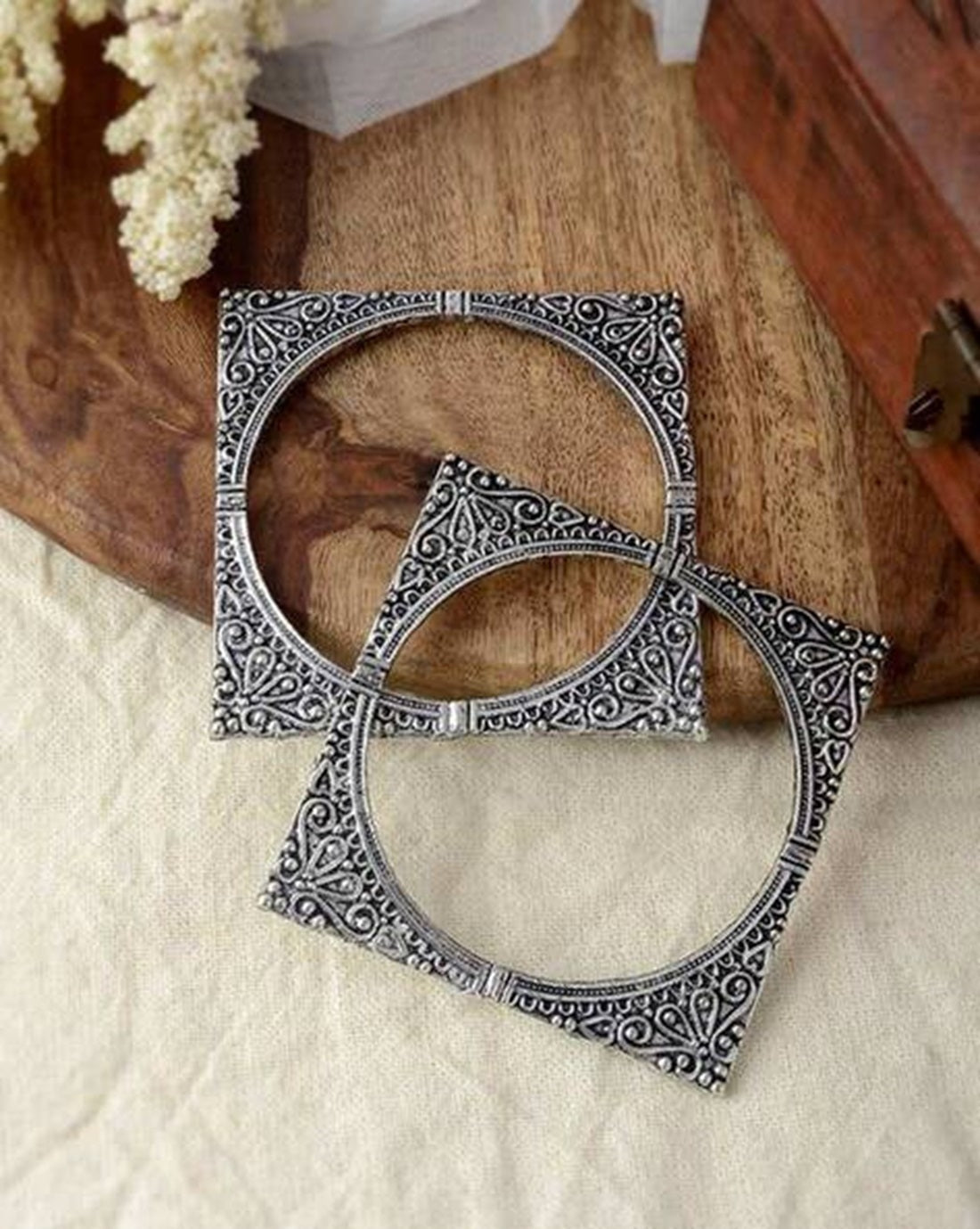 Elevate Your Style With These Silver Oxidised Sleek Square-Shaped Handcrafted Bangles By Vastrabhushan. Designed With A Minimalist Aesthetic, These Bangles Feature A Unique Square Shape That Sets Them Apart From Traditional Designs. Handcrafted With Precision, They Offer A Perfect Blend Of Contemporary Style And Vintage Charm. Ideal For Everyday Wear Or Special Occasions, These Bangles Add A Subtle Yet Striking Elegance To Your Ensemble.