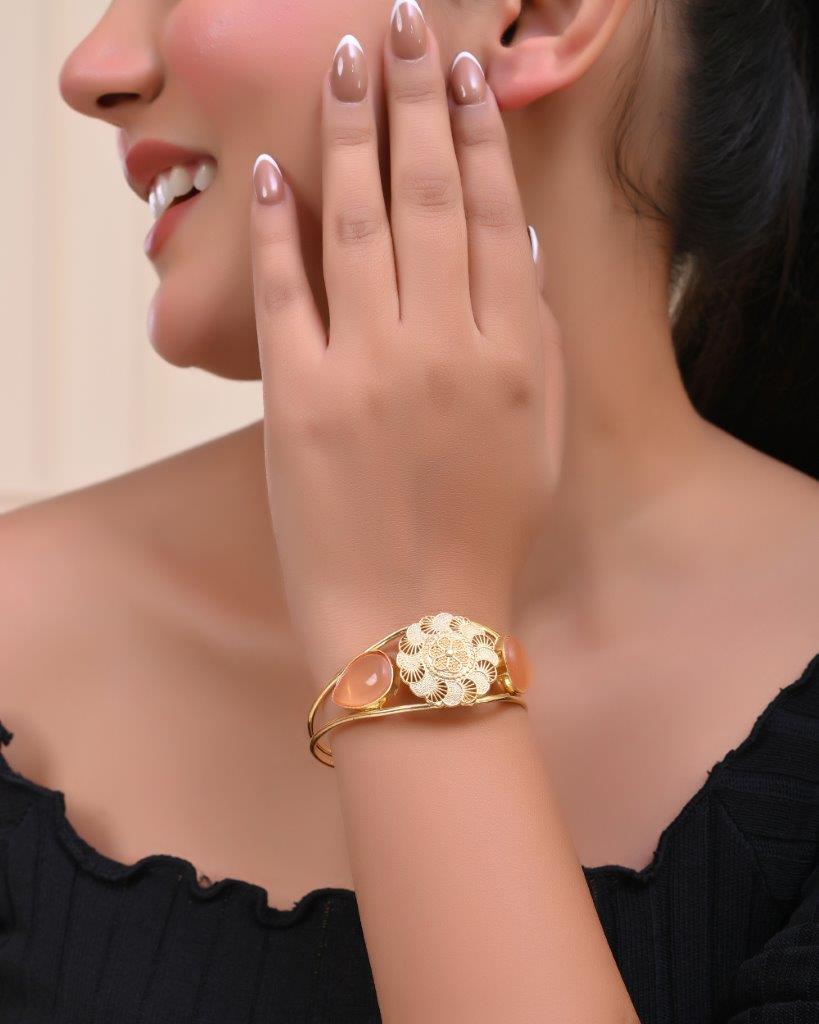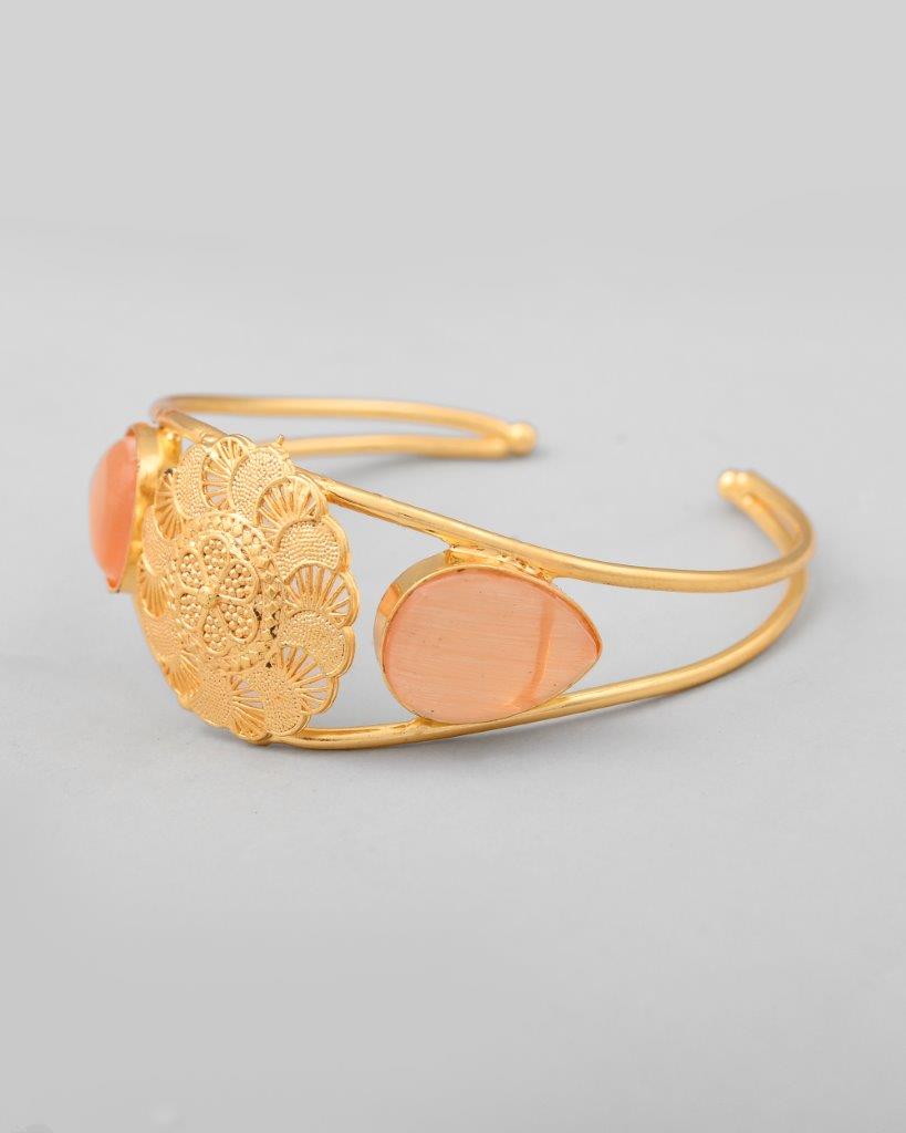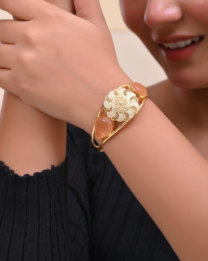 Elevate Your Accessory Game With Our Gold Plated Flower Shaped Cuff Bracelet. This Exquisite Bracelet Features Beautifully Crafted Flower Motifs, Finished In Radiant Gold Plating. The Open Cuff Design Allows For A Comfortable Fit On Any Wrist. Perfect For Both Everyday Wear And Special Occasions, This Bracelet Adds A Touch Of Floral Elegance And Charm To Any Outfit.