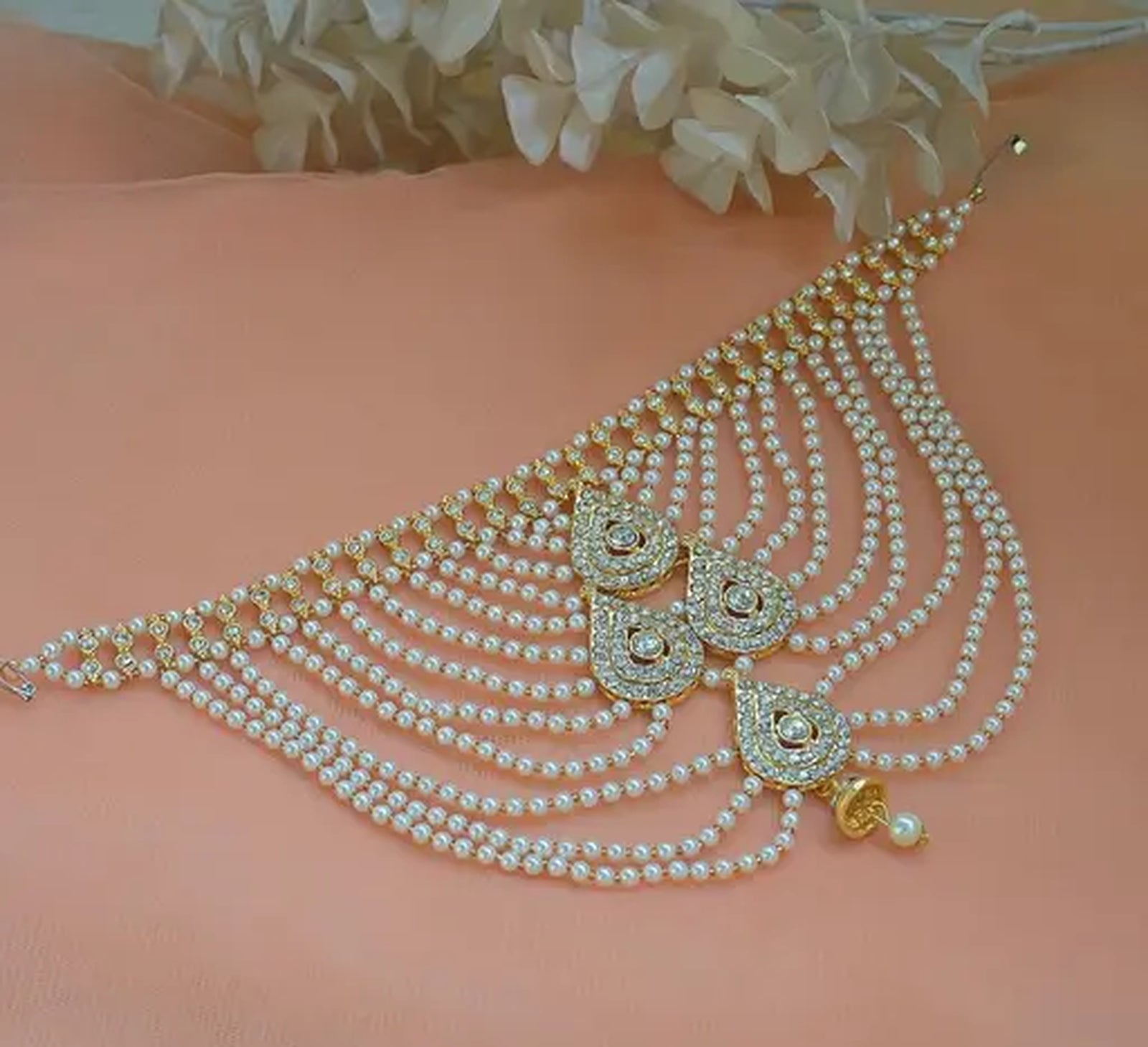 • Cascading Pearl Strands Creating A Waterfall Effect On The Back