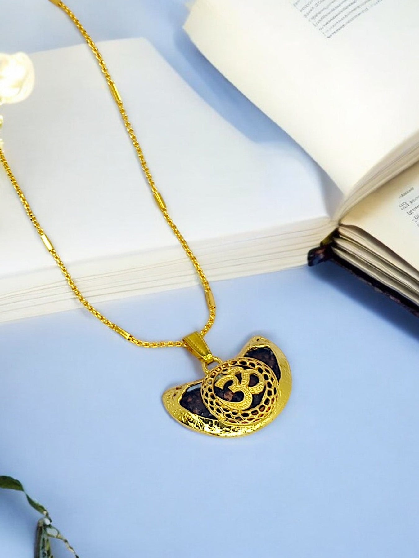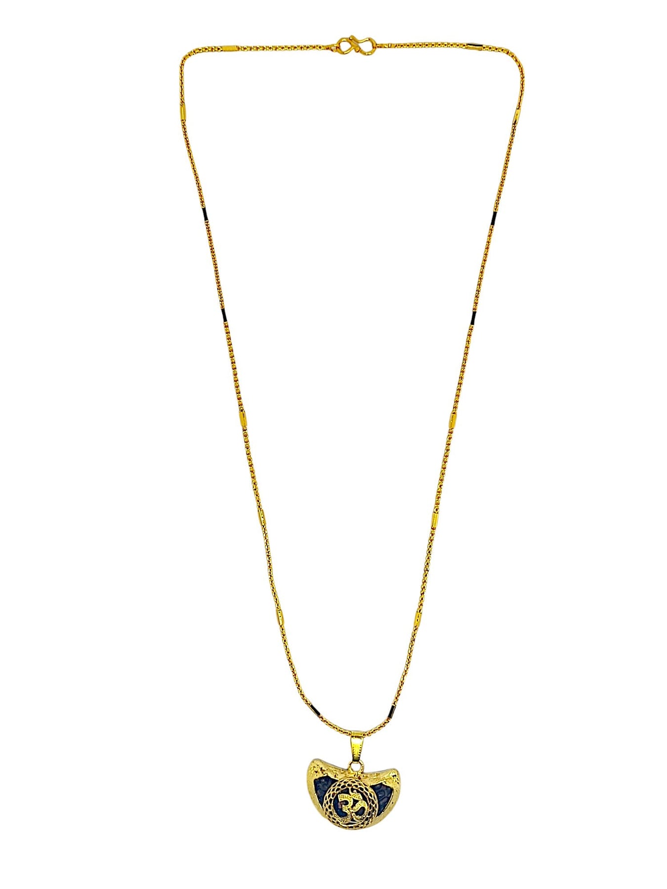 Gold-Plated Om Rudraksha Inbuilt Pendant Chain Secured With Hook Closure