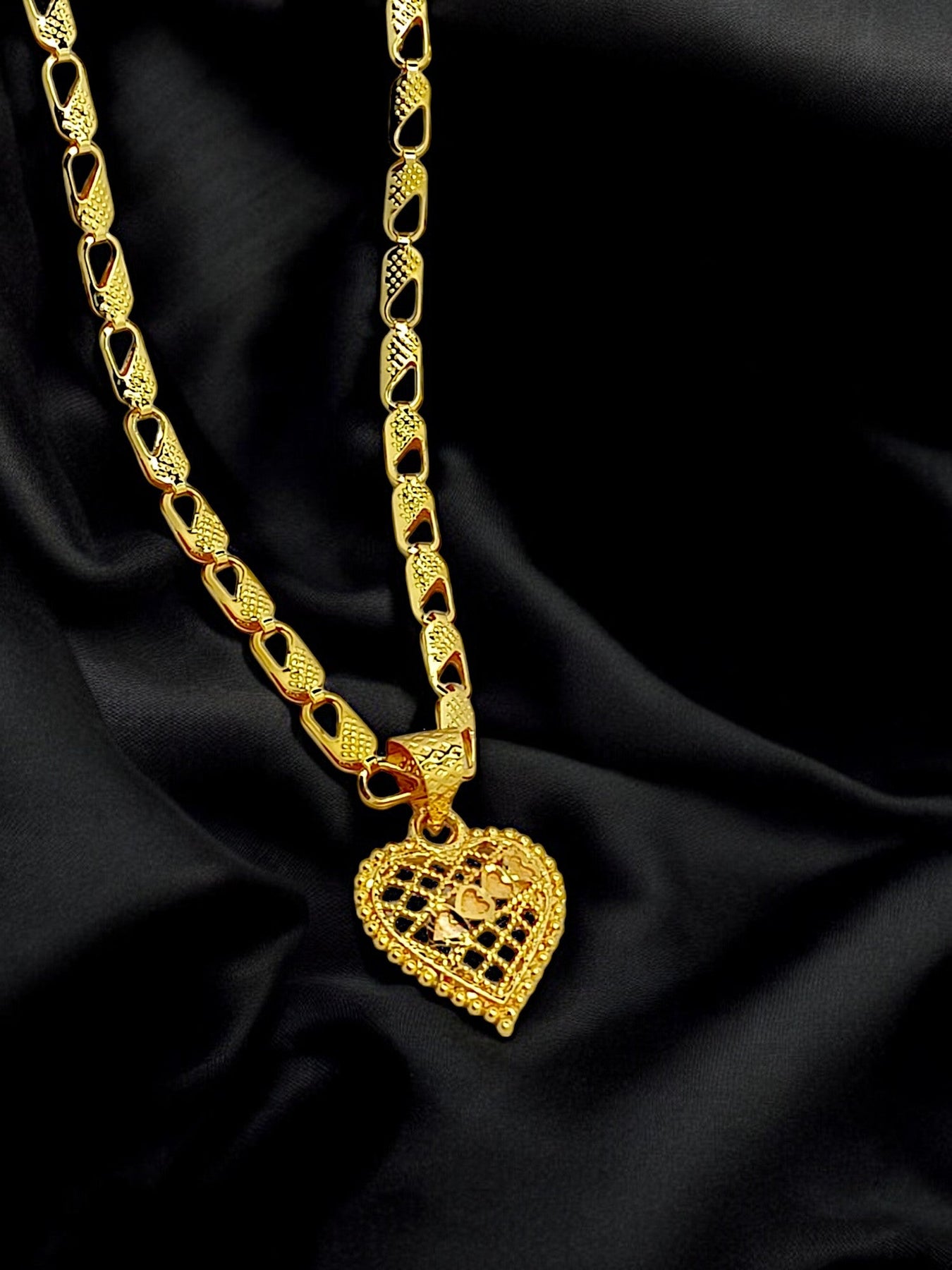 Gold-Plated Gold-Toned Heart Pendant With Chain Secured With S-Hook Closure