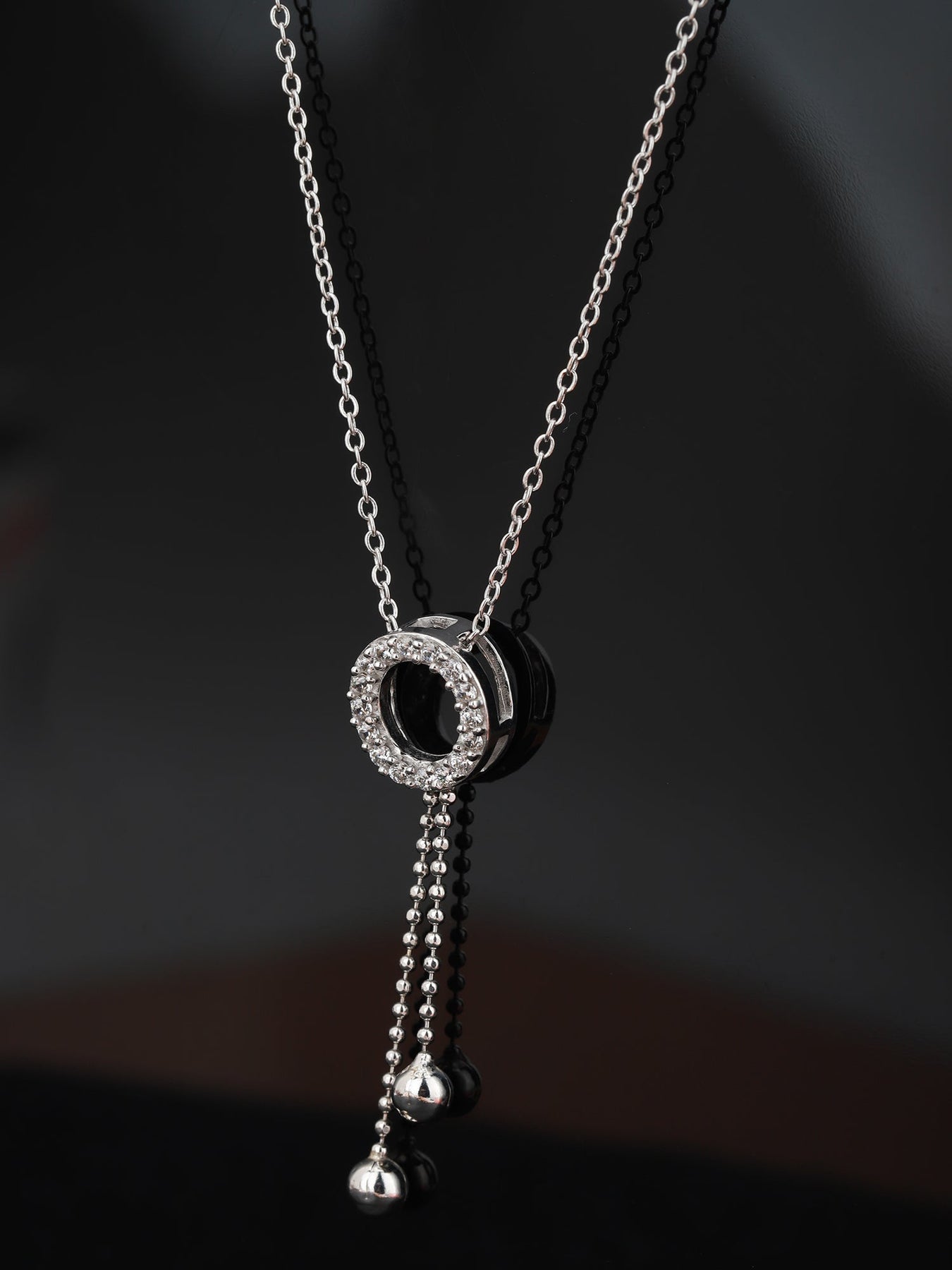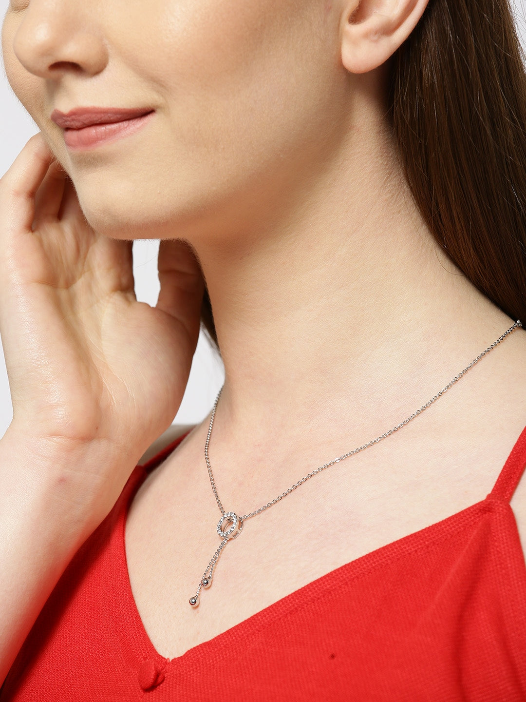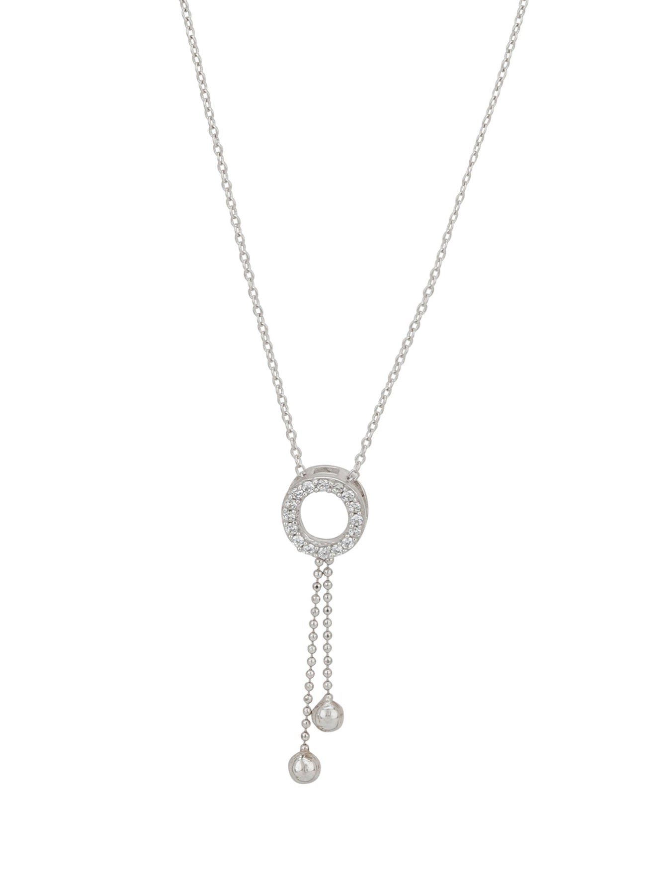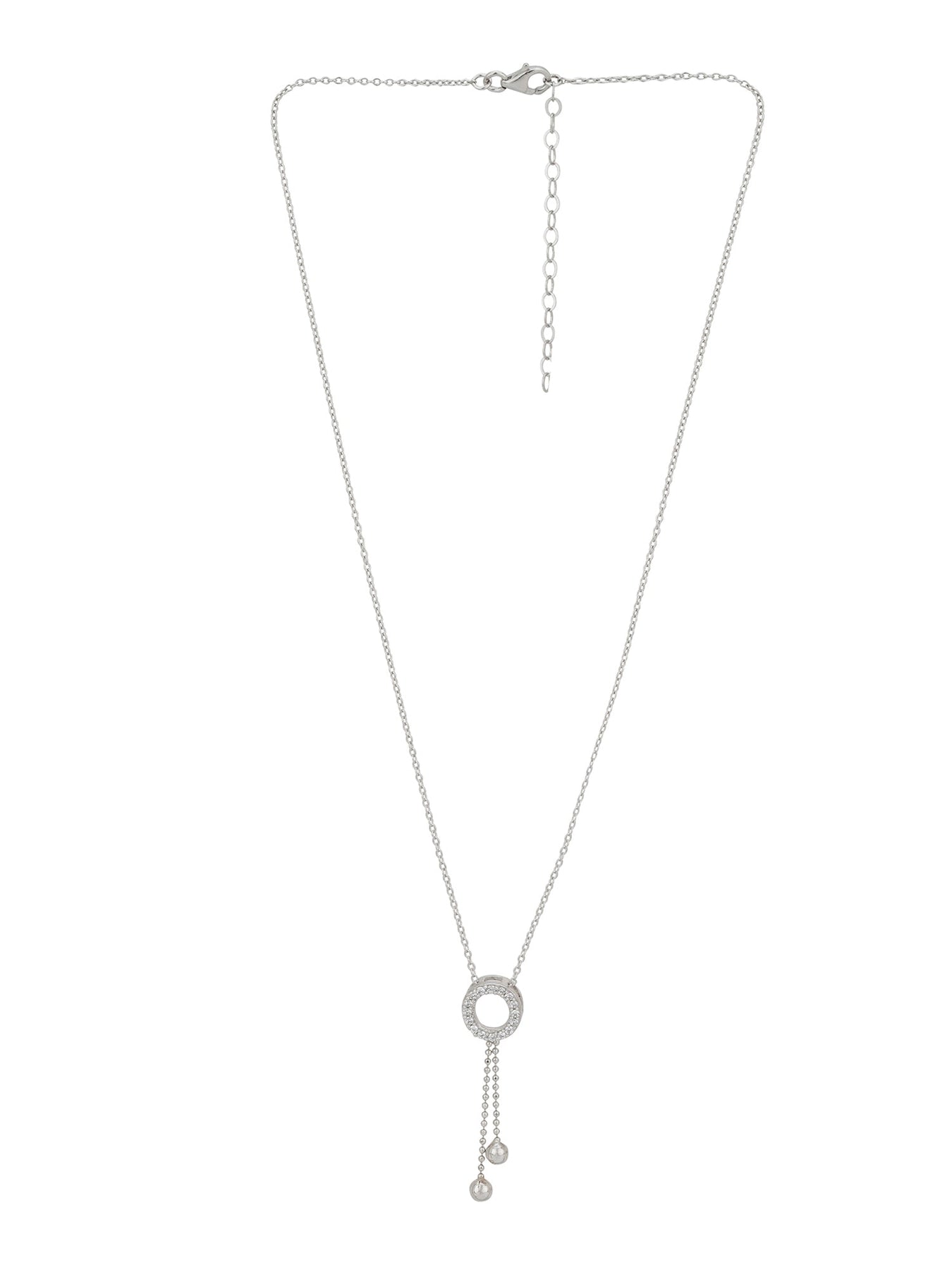 Carlton London Rhoduim Plated Silver-Toned CZ Studded Pendant With Chain