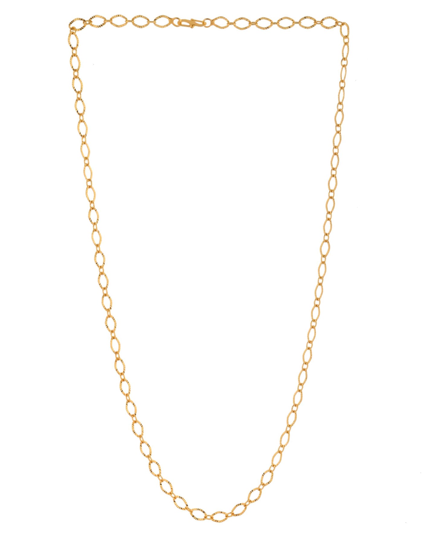 Introducing A Bold And Captivating Gold Chain Designed To Make A Statement. Crafted With Elongated, Twisted Oval Links, This Necklace Blends Classic Design With A Modern, Edgy Twist. Its Lustrous Gold Plating Reflects Light Beautifully, Adding A Refined Sparkle To Any Outfit.