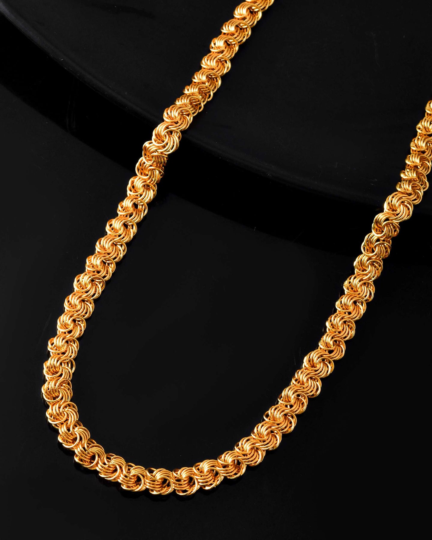 Step Into Timeless Luxury With This Designer Spiral-Knot Gold Chain, An Embodiment Of Intricate Craftsmanship And Bold Elegance. Meticulously Interlinked With Round Rope-Knot Style Links, This Chain Is A True Showstopper — Offering A Strong, Masculine Edge While Still Retaining Its Sophisticated Charm, Making It Perfect For Both Men And Women.