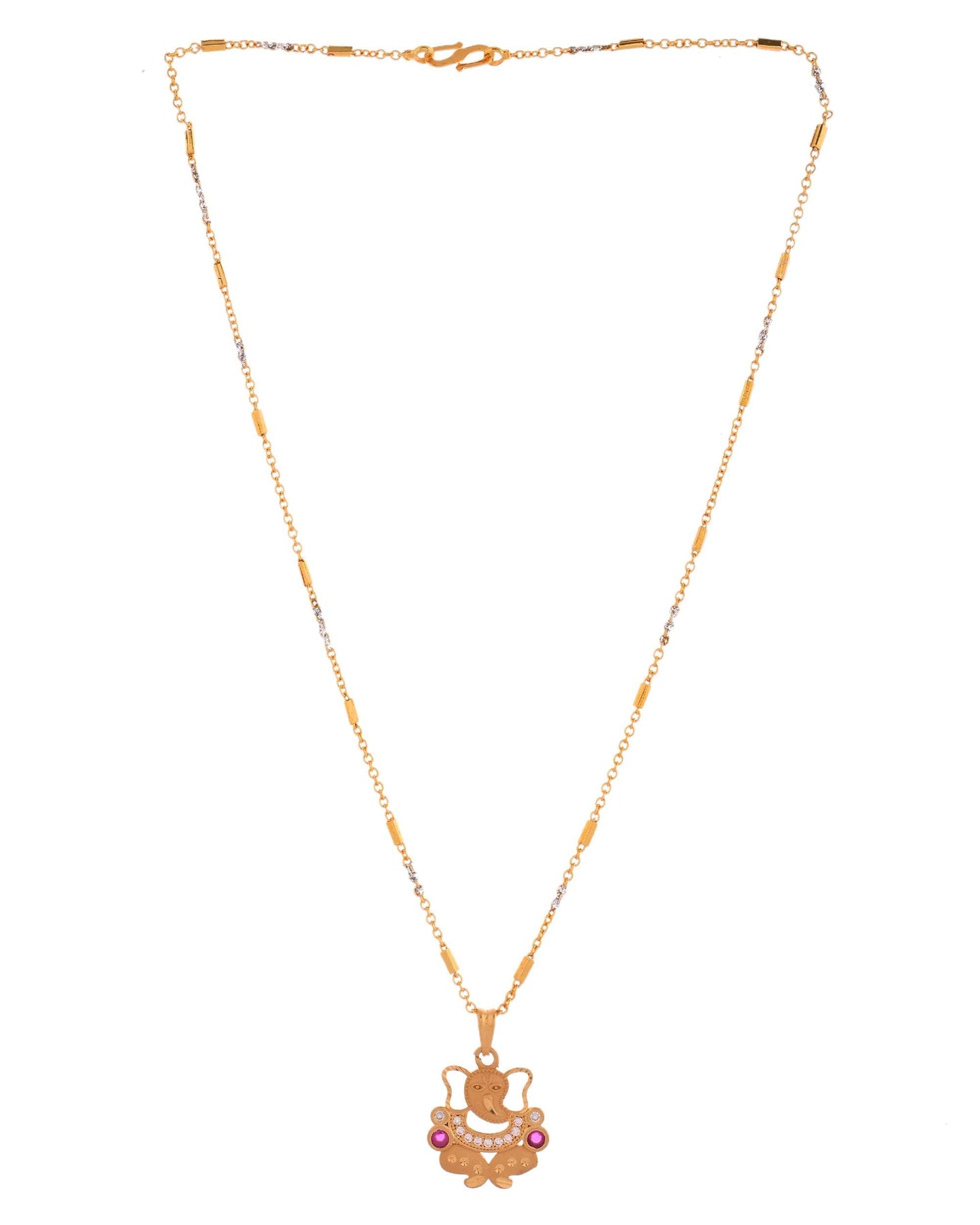Channel Spiritual Elegance With This Beautifully Crafted Ganesh Pendant Chain For Women. The Pendant Features An Intricately Detailed Lord Ganesh Motif, Symbolizing Wisdom And Prosperity. Enhanced With Ruby-Colored Accents And A Traditional Finish, It’S The Perfect Blend Of Devotion And Style.