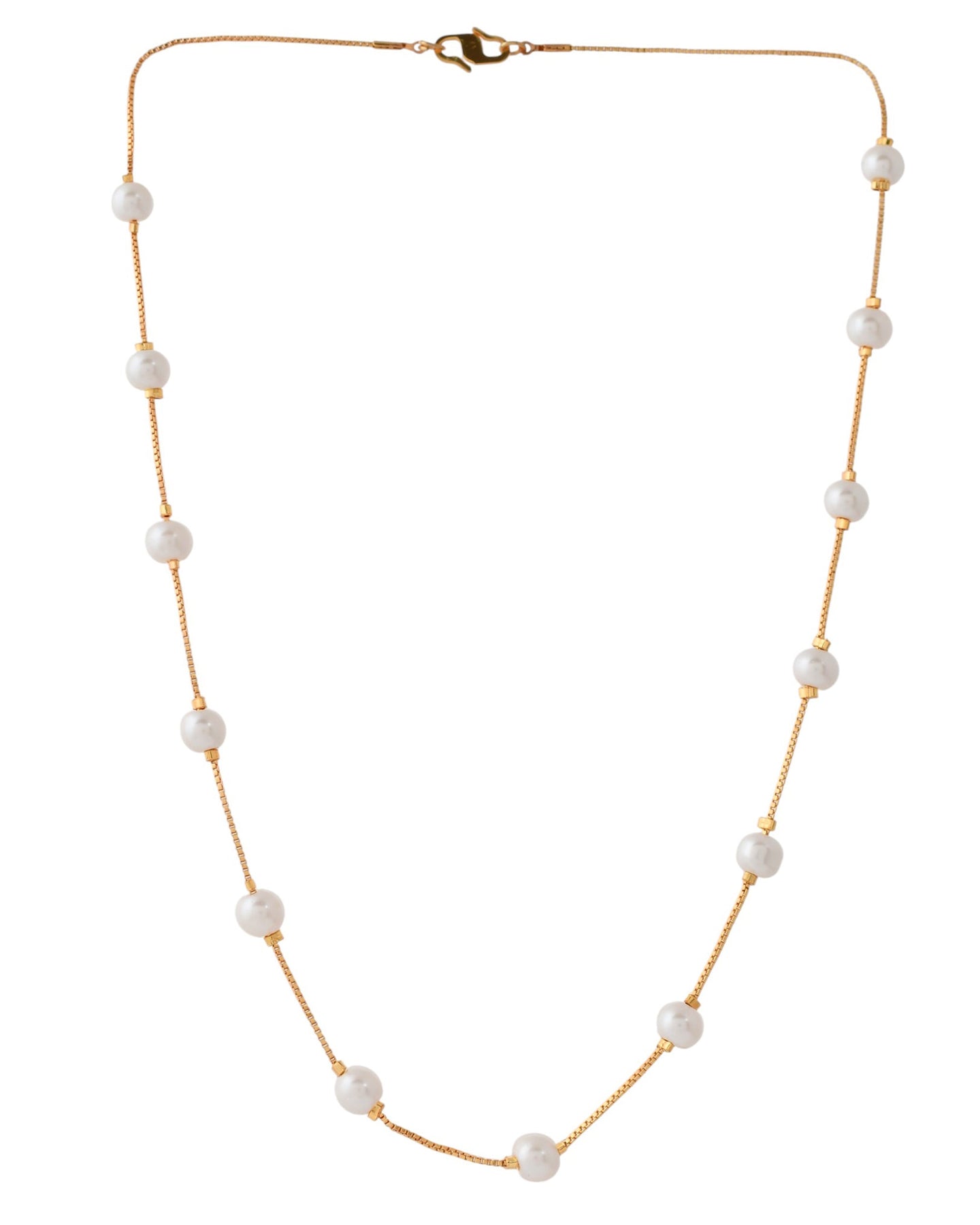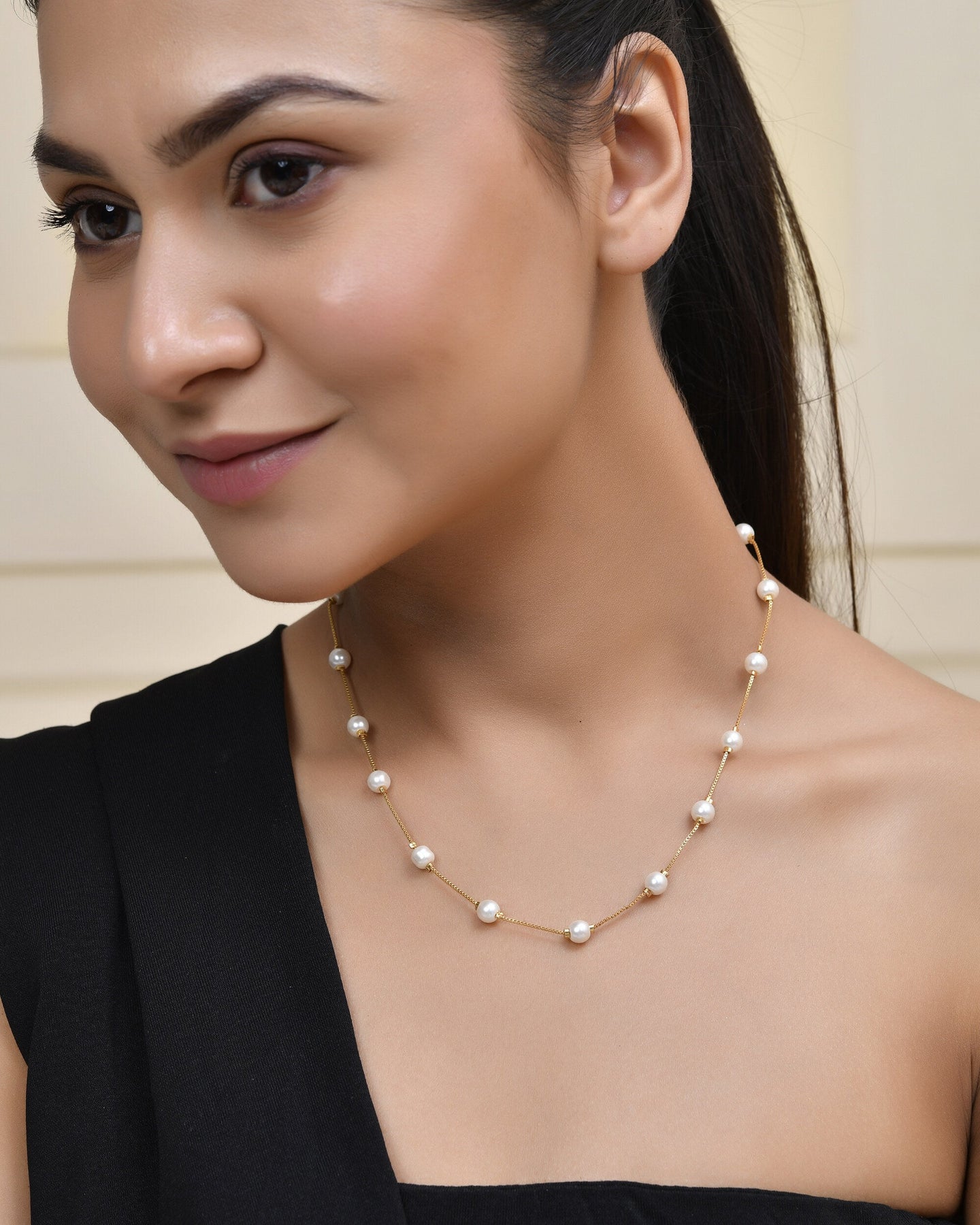 Add A Touch Of Sophistication To Your Jewelry Collection With This Stunning Gold-Plated Pearl Chain Necklace. Designed With Delicate Pearls Strung On A Sleek Gold-Plated Chain, This Elegant Accessory Is Perfect For Both Casual And Formal Occasions. The High-Quality Craftsmanship Ensures Durability While Maintaining A Lightweight And Comfortable Fit. Whether You Wear It As A Standalone Statement Piece Or Layer It With Other Necklaces, This Graceful And Minimalistic Pearl Chain Is An Essential Addition To Any Wardrobe. An Ideal Gift For Birthdays, Anniversaries, Or Special Occasions, This Timeless Beauty Blends Traditional Charm With Contemporary Elegance.