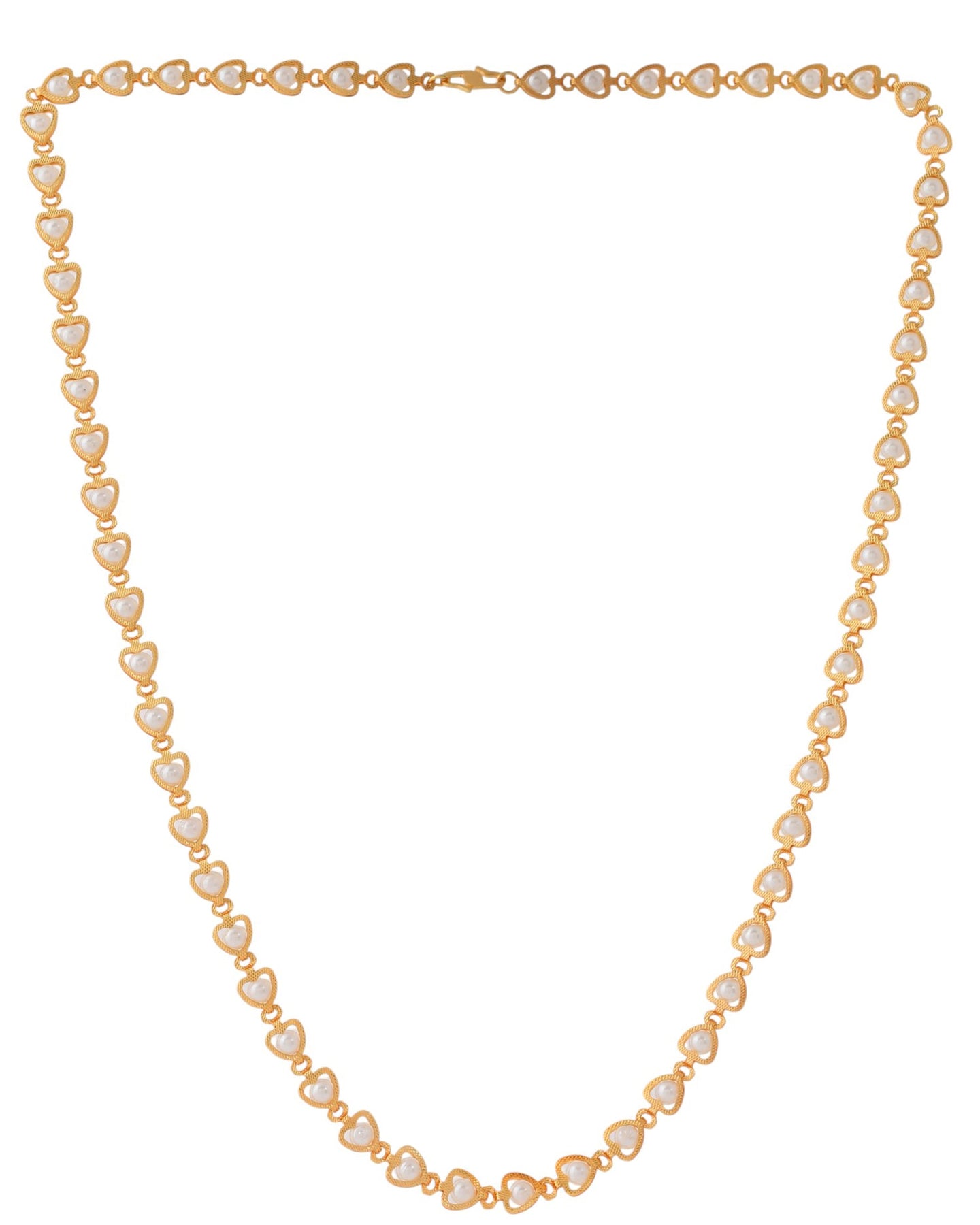 Enhance Your Jewelry Collection With This Stunning Gold-Plated Pearl Chain, A Perfect Blend Of Elegance And Tradition. Featuring Intricately Designed Gold-Tone Links Adorned With Lustrous Pearls, This Piece Is Ideal For Adding A Touch Of Sophistication To Any Outfit. Whether Worn Solo For A Graceful Look Or Layered For A Statement Style, This Versatile And Lightweight Chain Is Perfect For Festivals, Weddings, Parties, Or Daily Wear. Crafted With Premium-Quality Materials, It Ensures Durability And Long-Lasting Shine. A Must-Have For Those Who Adore Classic Pearl Jewelry With A Modern Touch, This Beautiful Handcrafted Chain Makes A Thoughtful Gift For Birthdays, Anniversaries, Or Special Occasions.