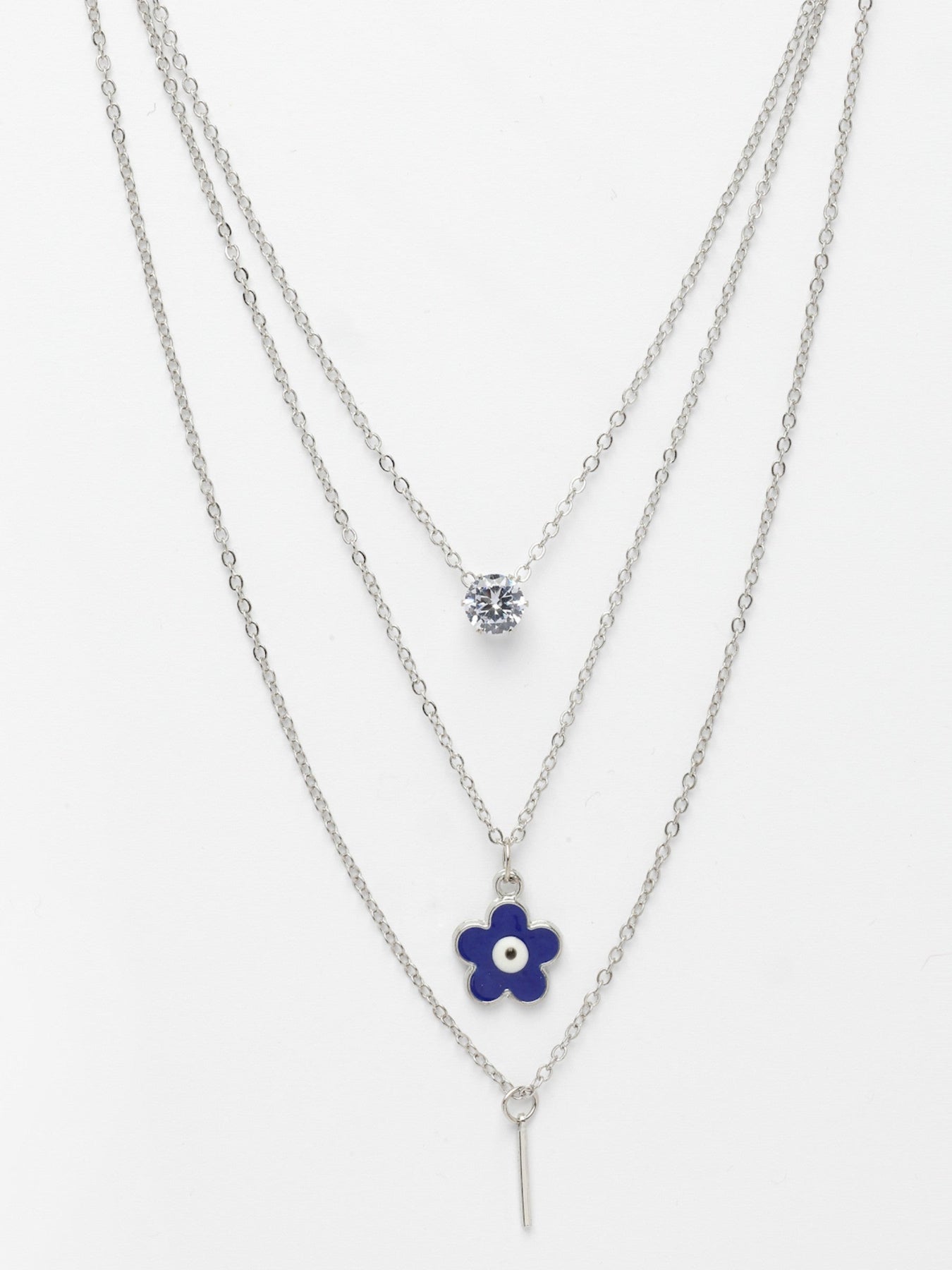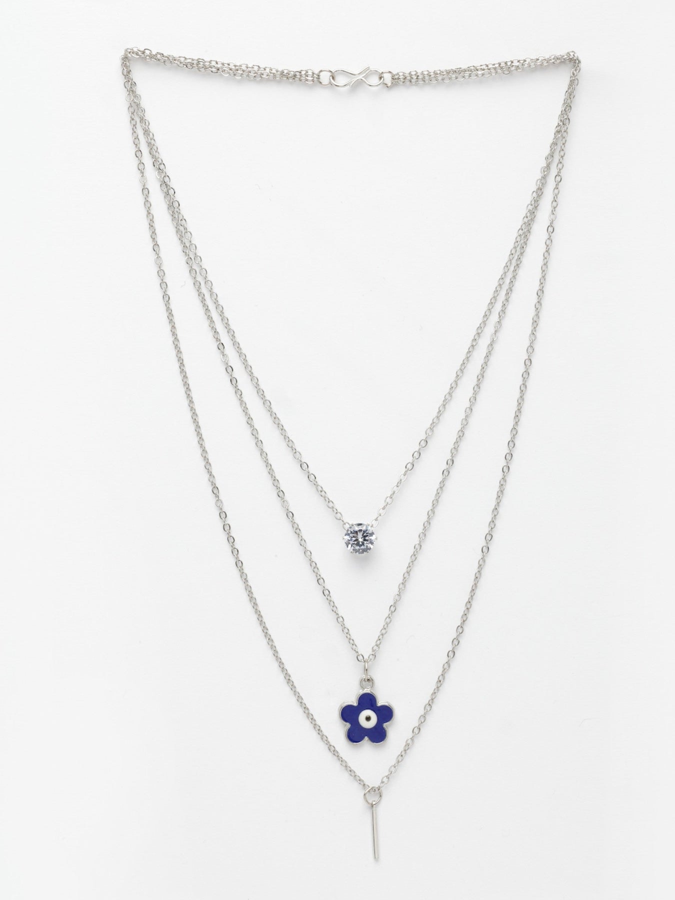 Style Note: The Nvr Women'S Silver-Toned Artificial Stones Floral Layered Chain Is A Delicate Yet Eye-Catching Piece That Combines Elegance With Modern Flair. Featuring Layered Chains Adorned With Intricate Floral Motifs And Sparkling Artificial Stones, This Necklace Adds A Touch Of Femininity And Sophistication To Any Outfit. The Silver-Tone Finish Enhances The Charm, Making It Perfect For Pairing With Both Casual And Formal Ensembles. Its Layered Design Creates A Dynamic And Stylish Look, Ideal For Making A Subtle Statement. This Piece Is Perfect For Those Who Appreciate Intricate Details And Versatile, Nature-Inspired Accessories.