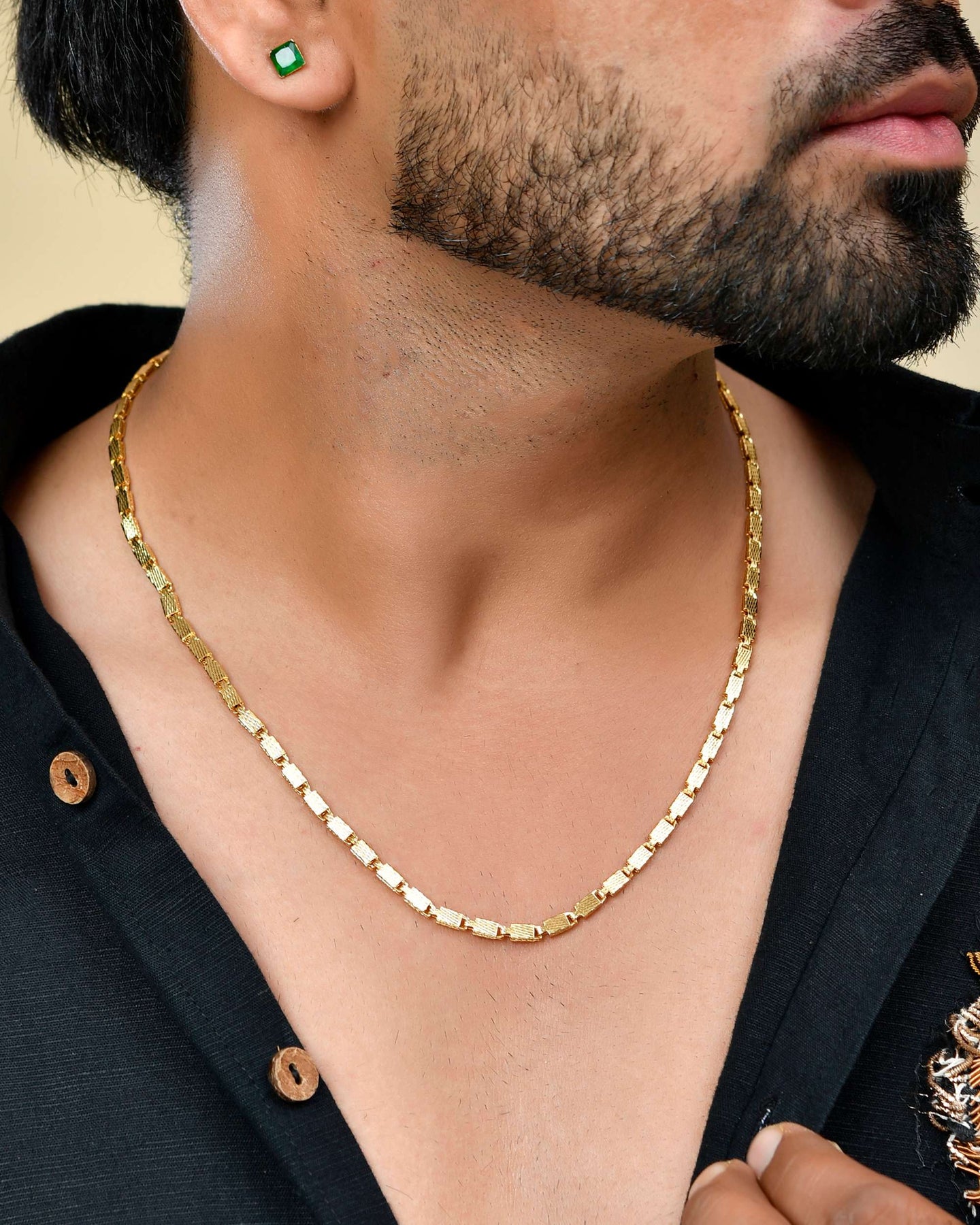 Elevate your look with our gold-plated biscuit-shaped chain for men. Featuring unique interlocking biscuit-shaped links, this chain combines modern design with classic elegance. Perfect for layering or wearing solo, it adds a stylish touch to any outfit, whether casual or formal. Crafted for durability and shine, this versatile accessory is a must-have addition to your jewelry collection!