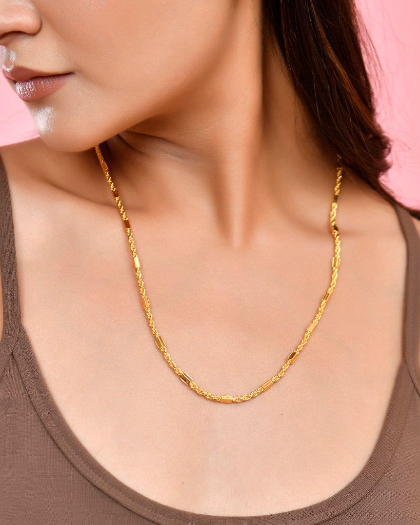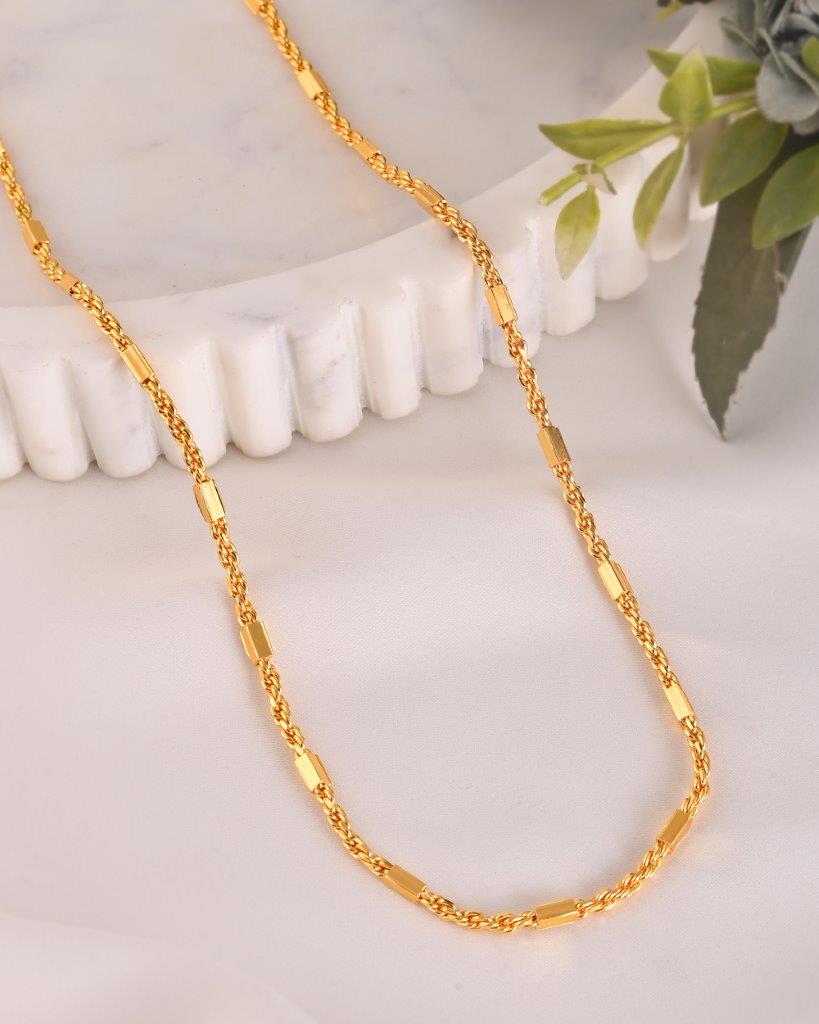 Add A Contemporary Edge To Your Jewelry Collection With Our Women Gold Plated Pipe Chain. This Stylish Chain Features A Sleek Pipe Design That Exudes Modern Elegance And Sophistication. Crafted With High-Quality Gold Plating, It Offers A Brilliant Shine While Ensuring Durability For Everyday Wear. Perfect For Layering Or Wearing Solo, This Versatile Piece Enhances Any Outfit, Making It An Essential Accessory For The Fashion-Forward Woman Who Values Unique Style.