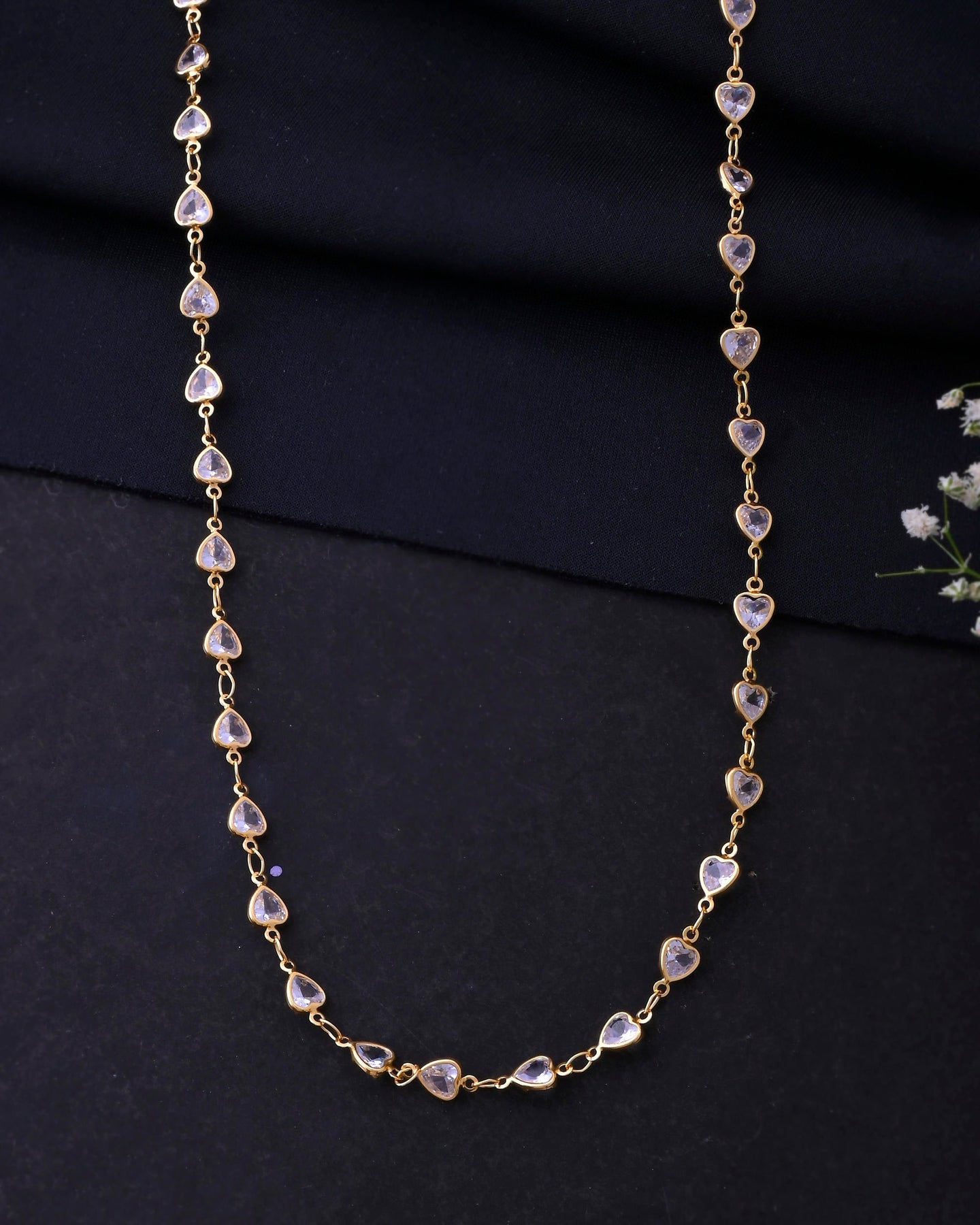 Add A Romantic Touch With This Women’S Gold-Plated Heart-Shaped Stone Studded Chain. Featuring Sparkling Stones Set In Charming Heart-Shaped Links, It Brings Elegance And Warmth To Any Look. The Gold Plating Ensures Lasting Shine And Durability, While The Lightweight Design Offers Comfortable Wear. Perfect For Gifting Or Treating Yourself, This Delicate Chain Is A Timeless Symbol Of Love.