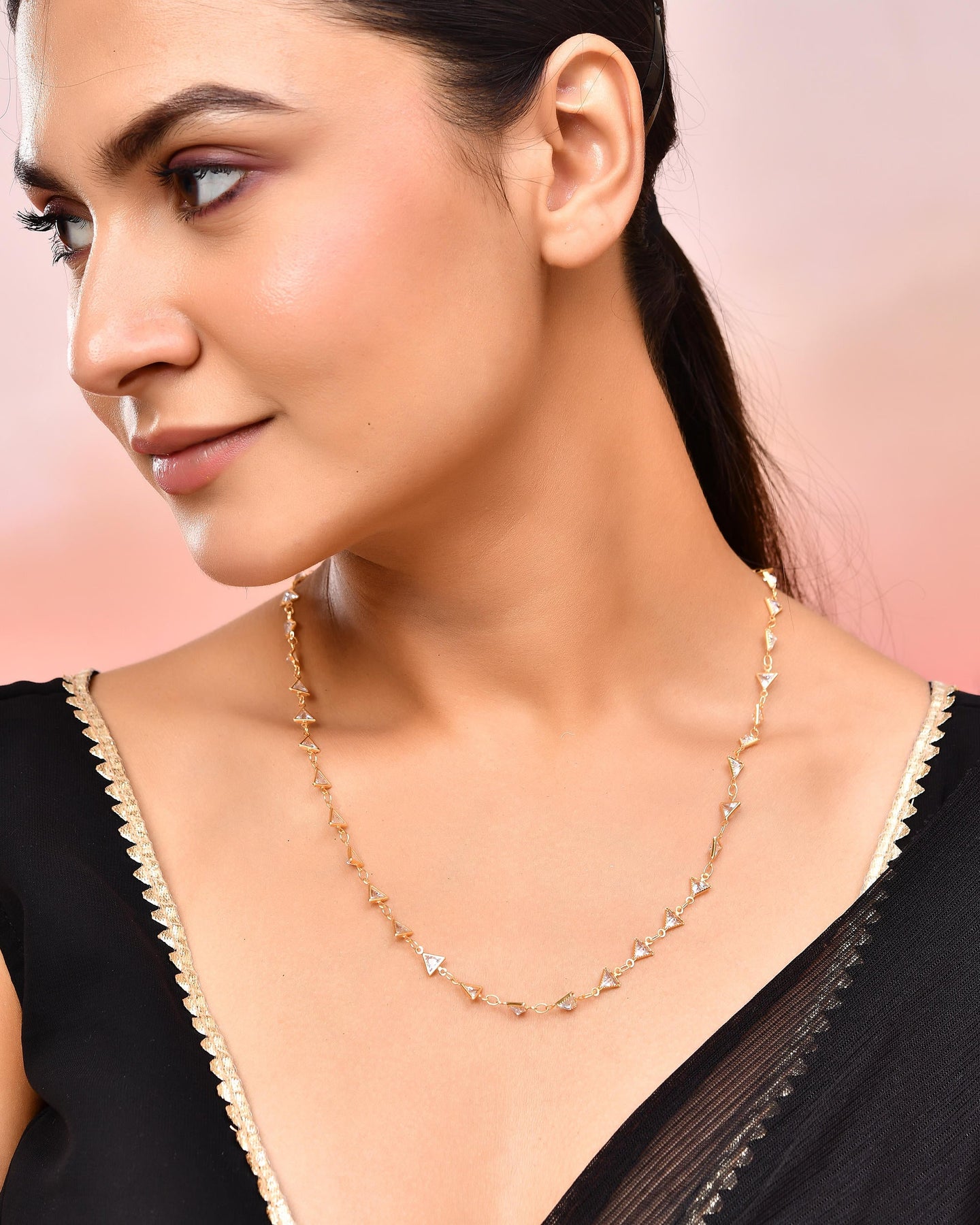Women's Gold Plated Triangular Stone Studded Chain