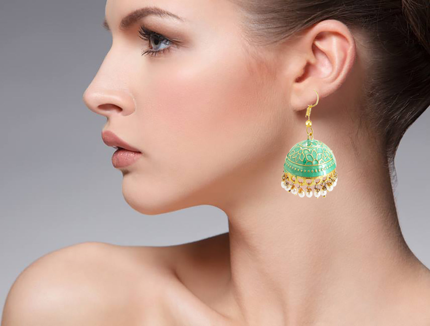 This Gracefully Gorgeous Gold Plated Meenakari Enamelled Jhumki Earring For Women Is Made Up Of Premium Quality Alloy. This Traditional Jewellery Adore A Women. These Can Be Worn Anytime Anywhere Its Perfect Match For Indian Tradtional Wear.