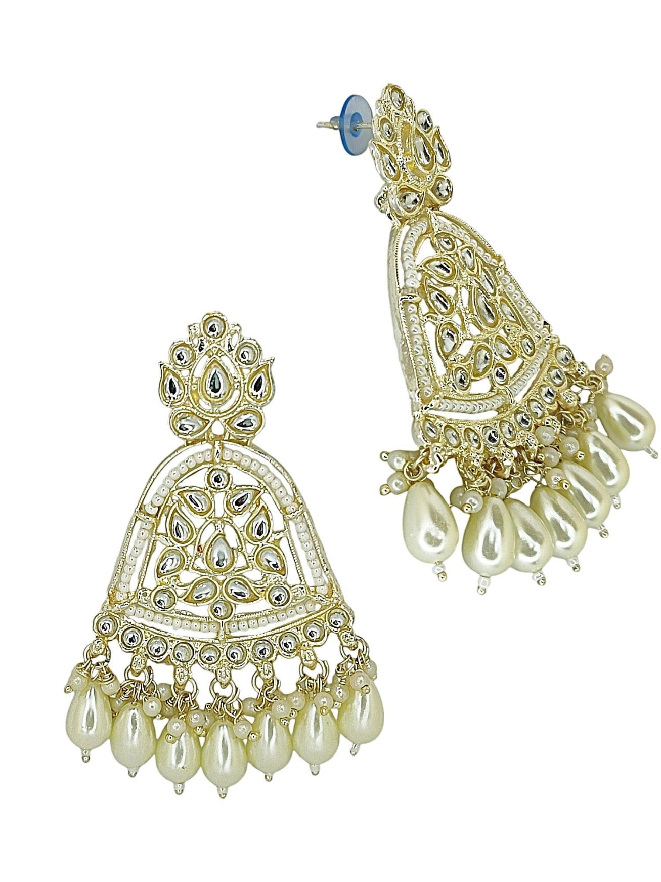 Gold Plated Drop Earrings With Kundan And Artificial Beads. Secured With Post And Back Closure.