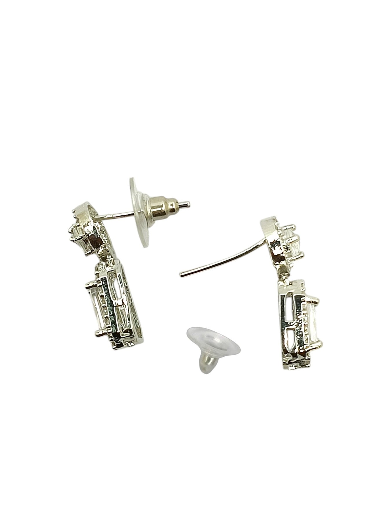 Silver Plated Ad Studded White Drop Earrings. Secured With A Post And Back Closure