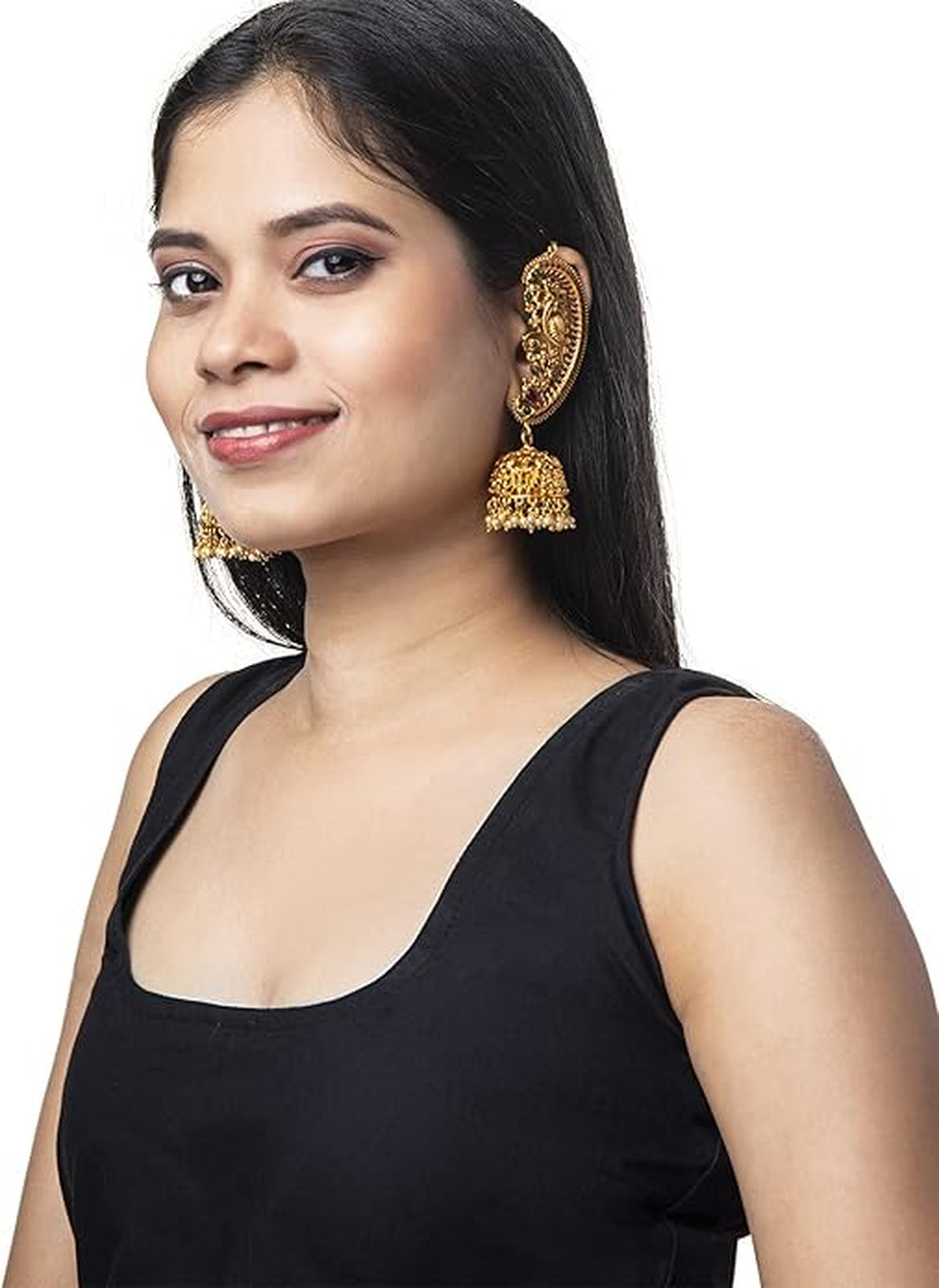 Elevate Your Ethnic Ensemble With These Stunning Gold-Plated Peacock Jhumka Earrings, A Perfect Blend Of Traditional Craftsmanship And Regal Elegance. These Intricately Designed Earrings Are Sure To Make You Stand Out At Any Indian Wedding, Festival, Or Special Occasion.
